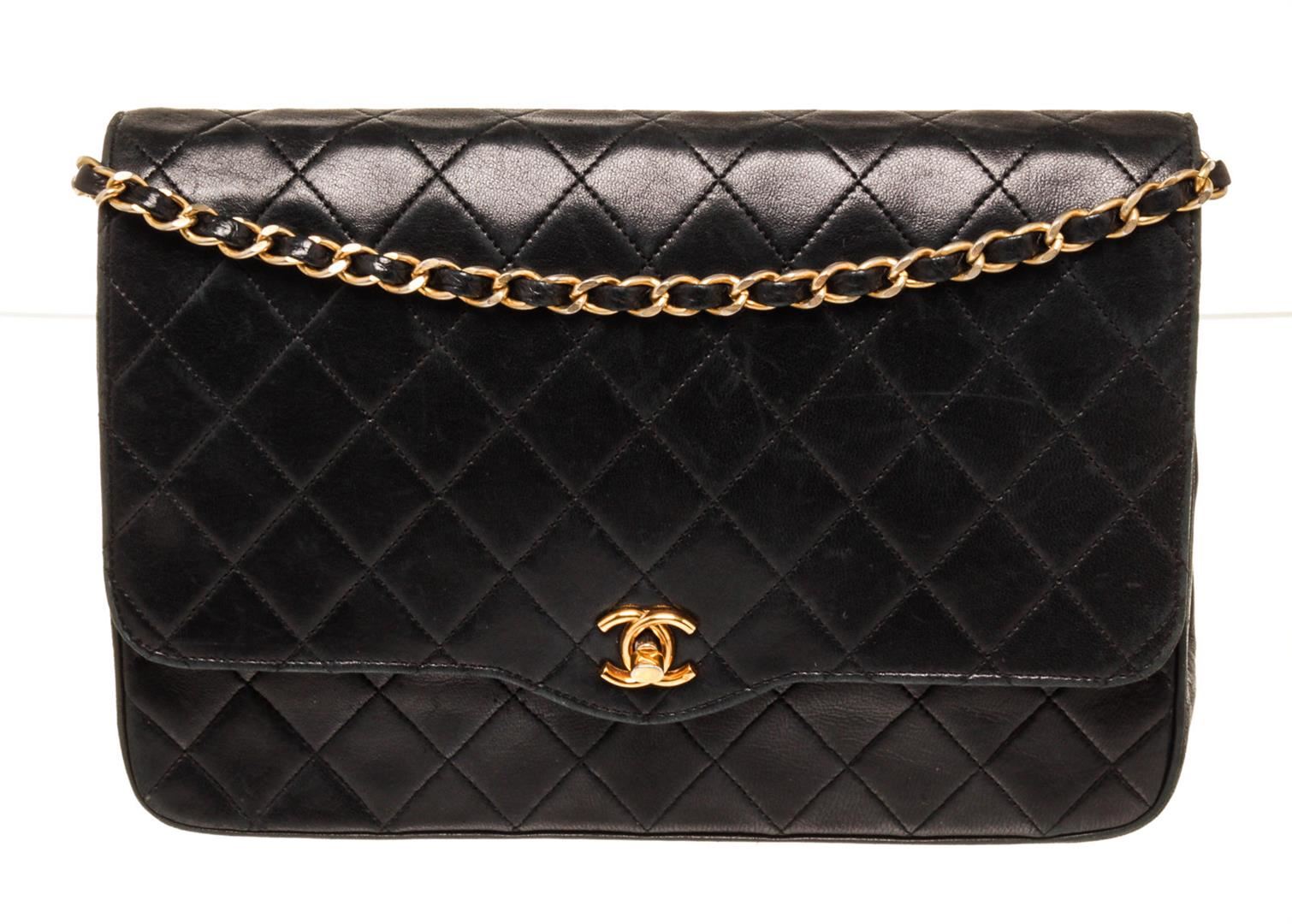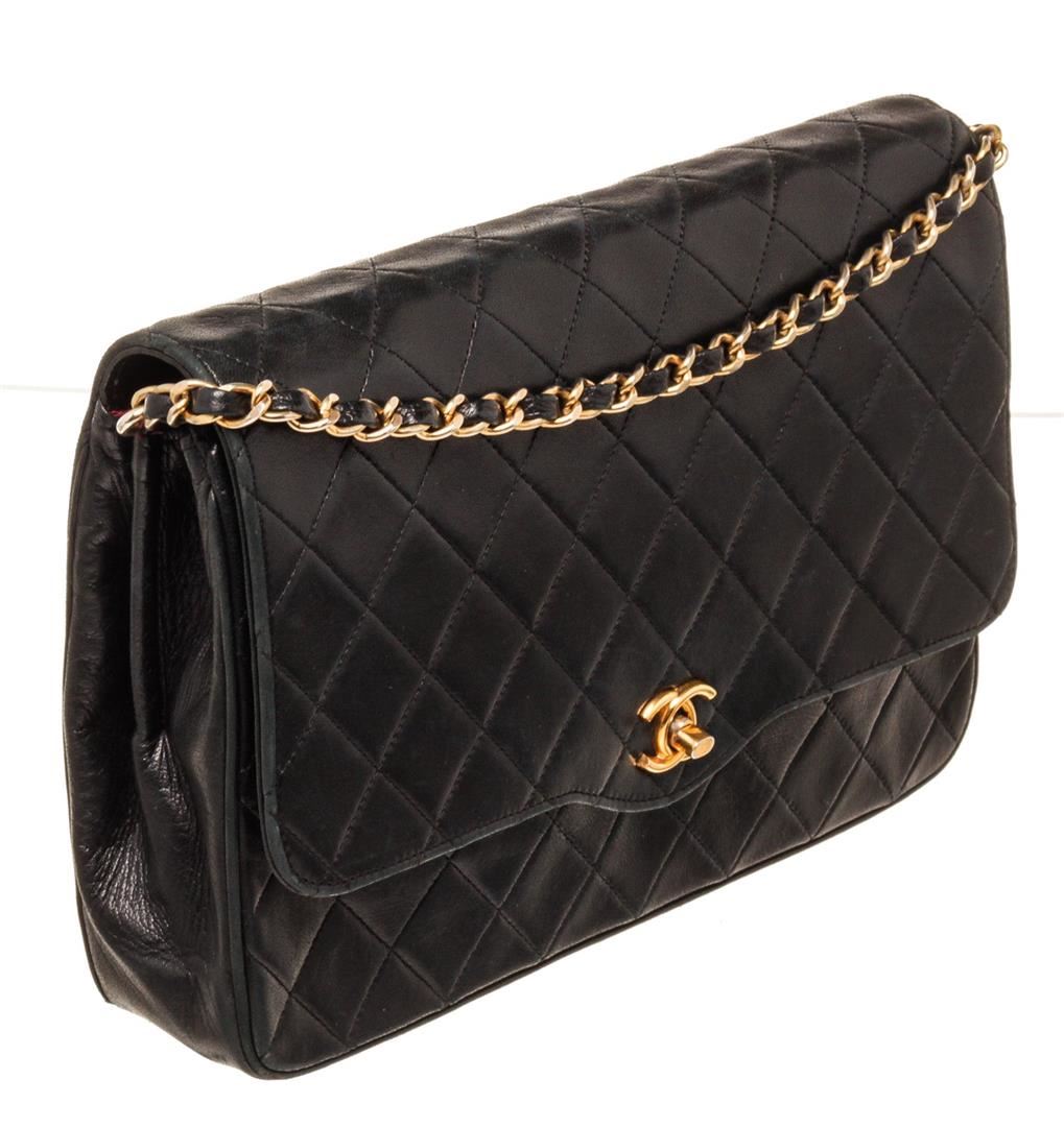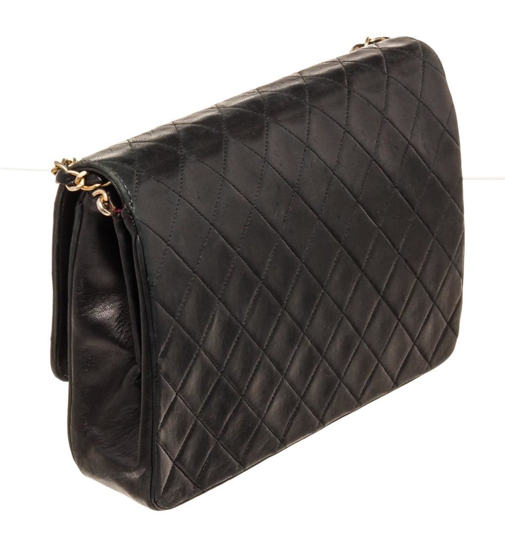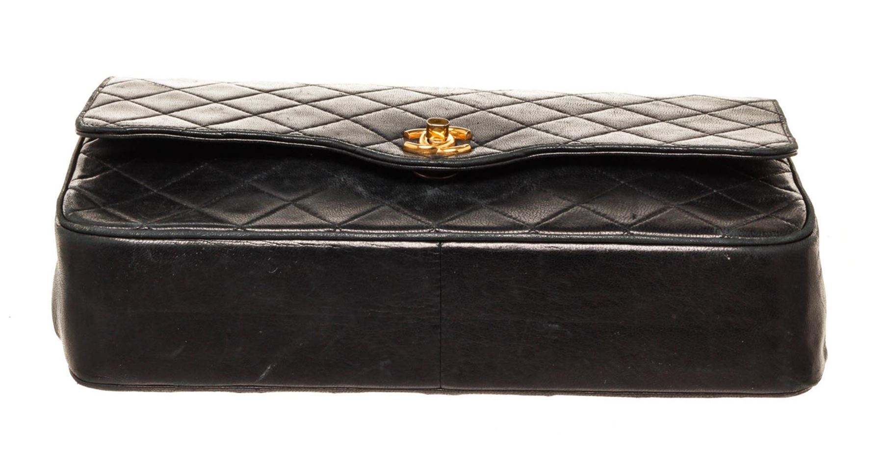 Chanel Black Leather Vintage CC Flap Shoulder Bag. Please see photos and description for all available information! Chanel Black Leather CC Half Flap Shoulder Bag with material leather, gold-tone hardware, interior zip pockets, chain shoulder strap and fl