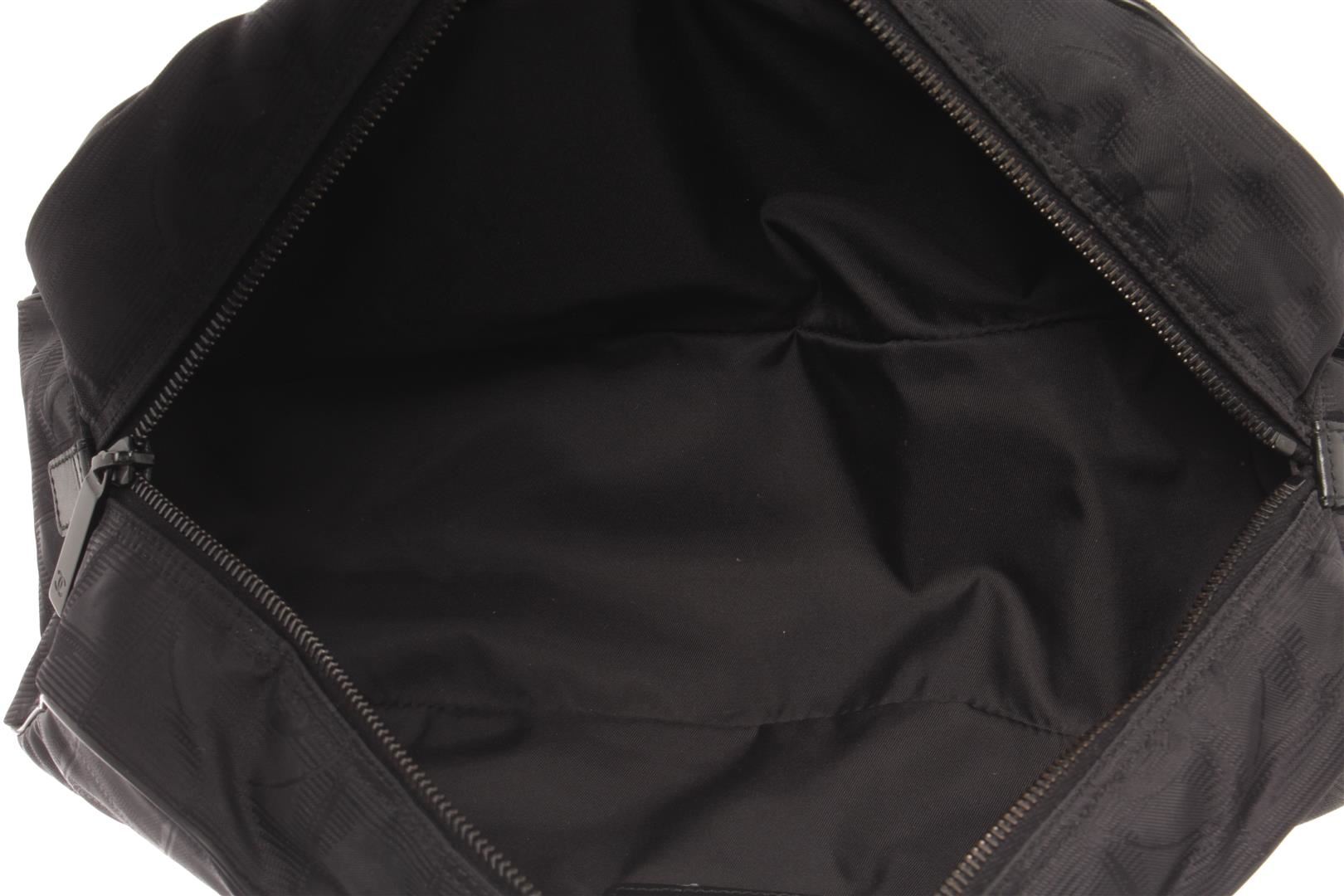 Chanel Black Nylon Mini Jacquard Travel Line Boston Bag. All available information is listed in the description and shown in the photos. Chanel mini boston bag inBlackbeige jacquard nylon from the travel linez, Outside has black leather handles, It is secured with a zipper closure and inside has a fabric lining with one zipper pocket. 13.8 x 4.3 x 5.1 inches/ 35 x 11 x 13 cm