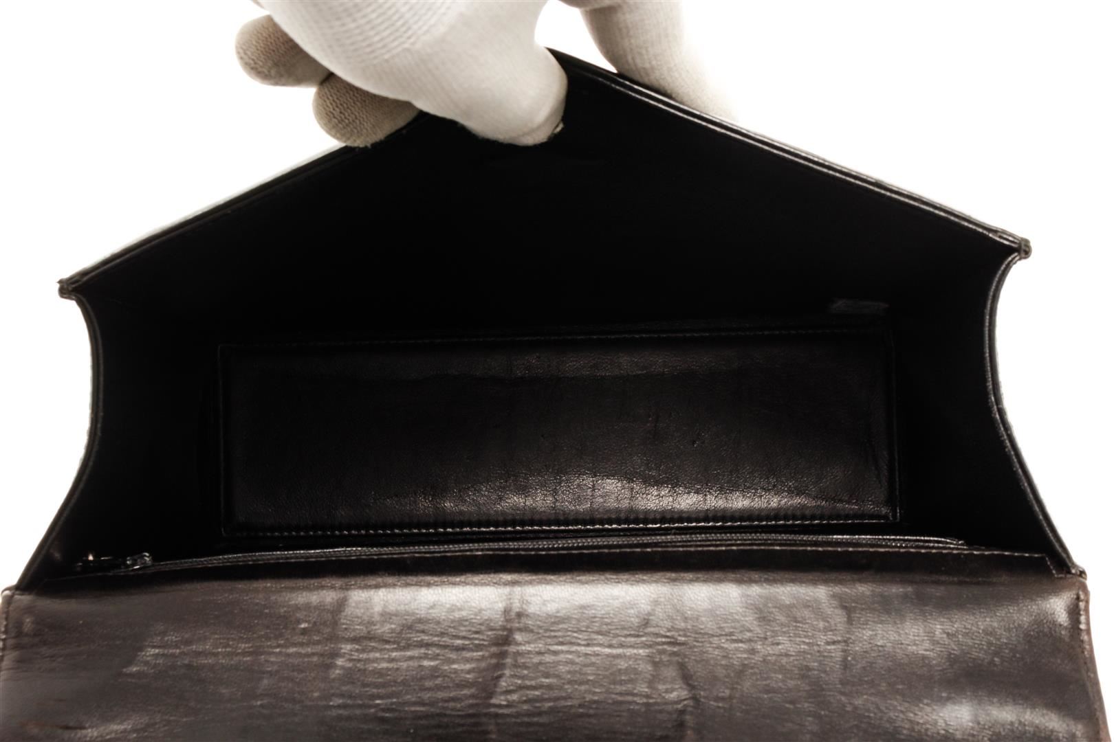 One Chanel Black Patent Leather CC Chain Shoulder Bag. Item is sold AS-IS. All available information is listed in the description and shown in the photo. Chanel black patent leather CC chain shoulder bag with black patent leather exterior, black leather lining, silver-toned hardware, silver chain top handle with shoulder pad, flap and snap button closure, CC logo on the flap, and one interior zip pocket. Conditions: this bag has a fine scratch at the base of the flap (photo), and on the back chain inlay (photo) no signs of wear or stains inside and out. chain length 34 cm. Height: 9.1" Width: 10.6" Depth: 3.1", Handle Drop: / 23.11 x 26.92 x 7.87 Cm