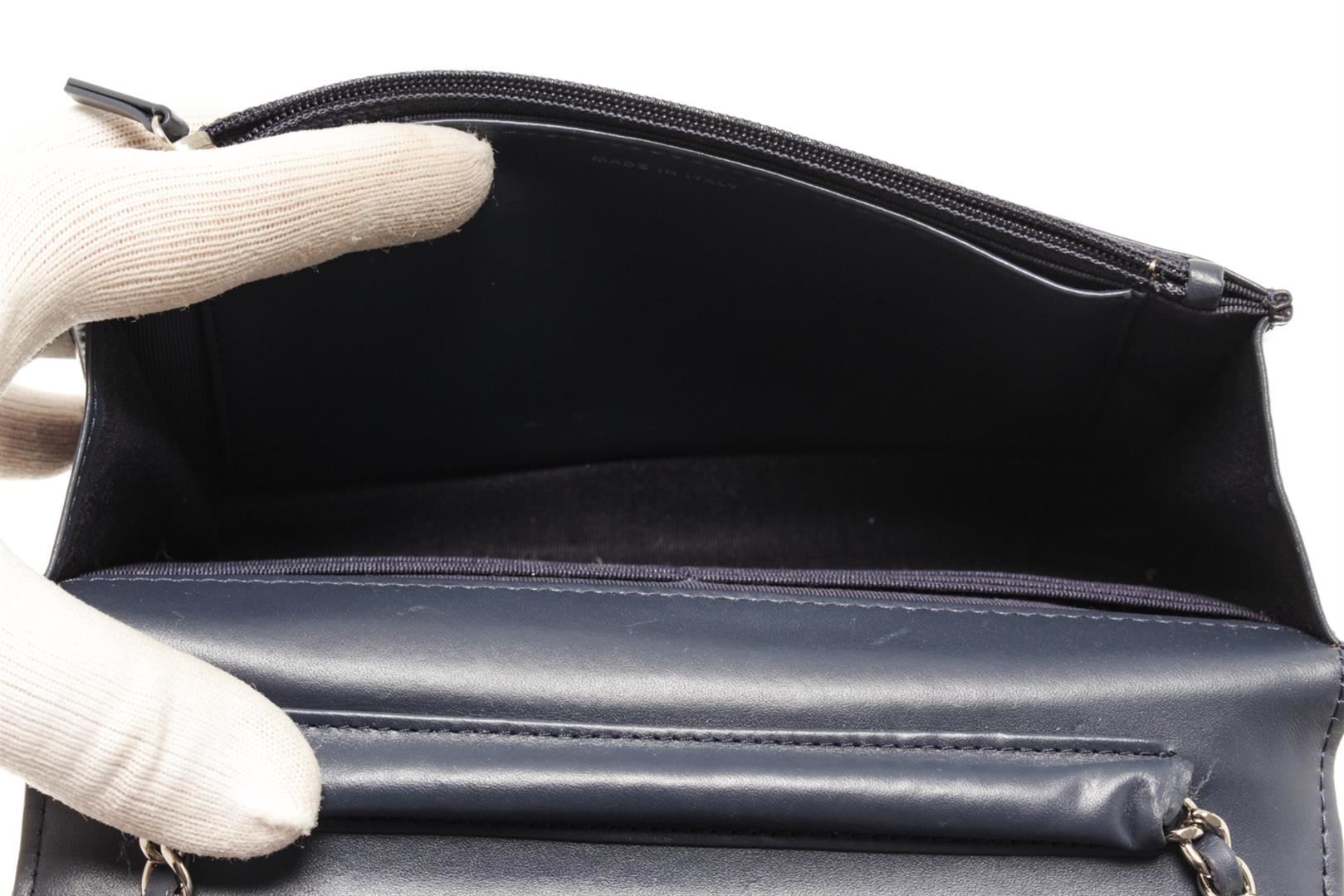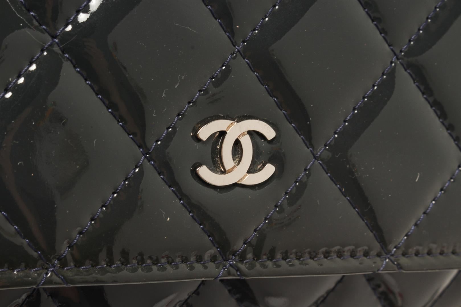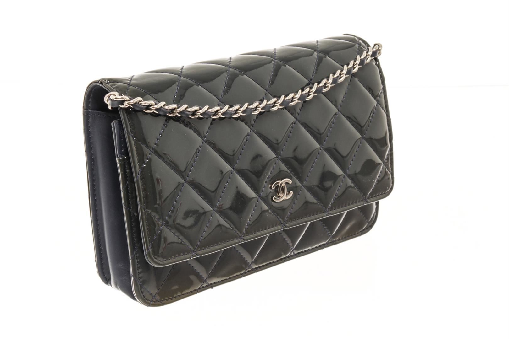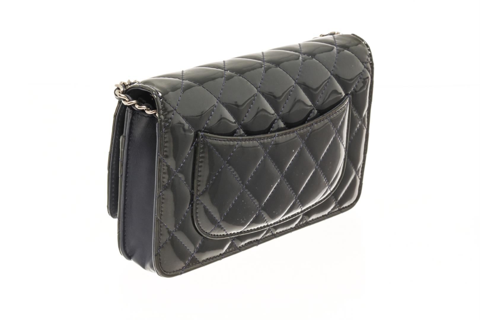 One Chanel Black Patent Leather Woc Flap Shoulder Bag. Item is sold AS-IS. All available information is listed in the description and shown in the photo. Chanel Black Patent Leather Woc Flap Shoulder Bag