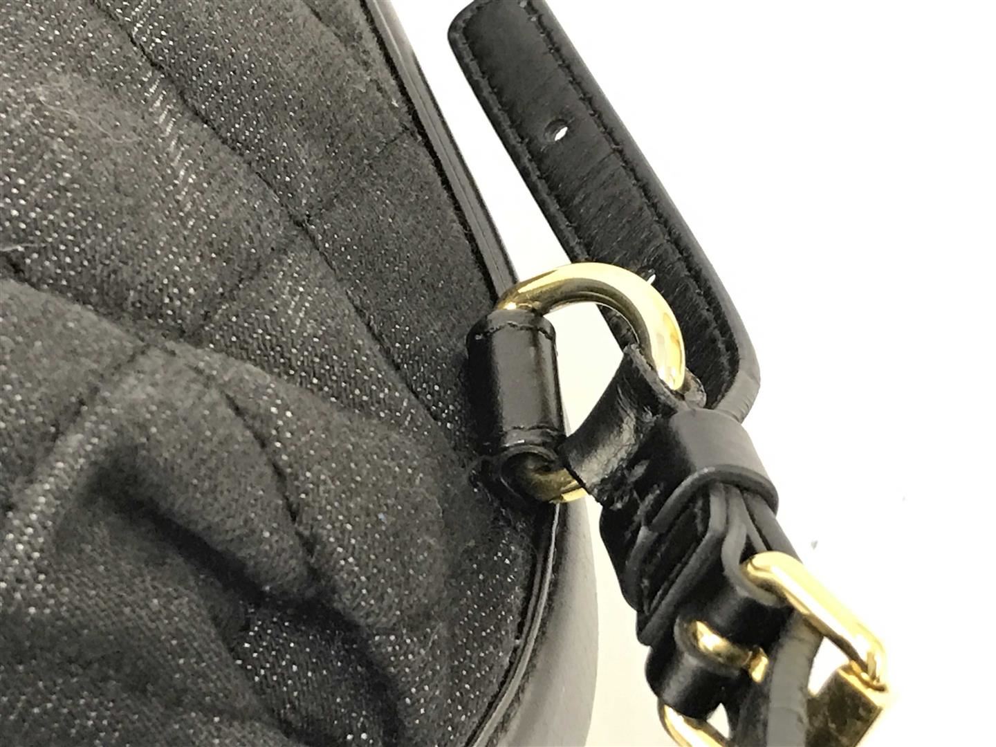This Chanel backpack flaunts a black quilted leather and denim exterior with an interlocking CC turn-lock on the flap, adorned with gold-tone hardwater. The bag has two shoulder straps, one zip pocket inside and the brown grosgrain lining. Complete with f