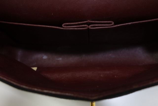 One Chanel Black Quilted Fabric Medium Flap Bag. Item is sold AS-IS. All available information is listed in the description and shown in the photo. Chanel Medium Flap Bag featured black quilted denim body with gold-tone hardware, chain shoulder strap, interlocking CC turn-lock closure and flap top that will open to red leather interior lining. PLEASE NOTE: bag has discoloration and creasing Width 9.8?³ x Height 6?³ x Depth 2.5?³