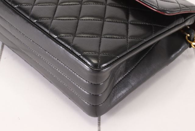 One Chanel Black Quilted Lambskin Leather CC Turn-lock Small Flap Shoulder Bag. Item is sold AS-IS. All available information is listed in the description and shown in the photo. Black quilted Lambskin leather Chanel CC Circle Turn-lock Flap small shoulder bag with gold-tone hardware, front flap with circle CC turn-lock closure at front, woven leather and chain-link shoulder strap, red leather lining and three pockets inside; 2 slip and 1 zip. Length: 8.4" (21 cm) Height: 5.25" (13 cm) Depth: 2.5" (6 cm) Strap Drop: 19.5" (49 cm)