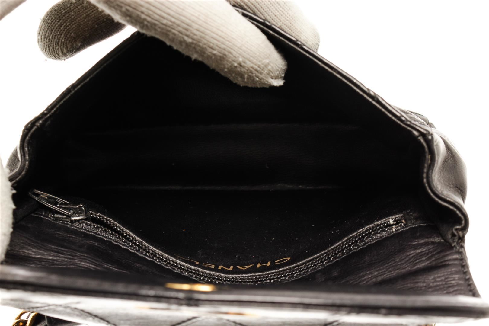 One Chanel Black Quilted Leather Waist Clutch Bag. Item is sold AS-IS. All available information is listed in the description and shown in the photo. Chanel Black Quilted Leather Waist Clutch Bag with gold-tone and silver-tone hardware, black leather lining, interior zip pocket, chain leather waist strap, and flap closure with CC turn-lock. .