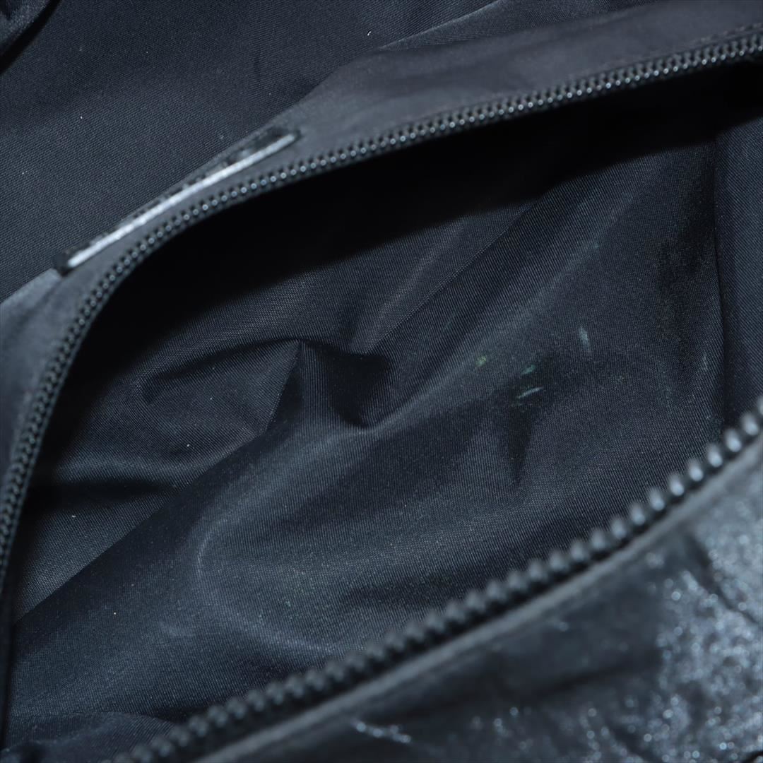 Black quilted nylon Chanel Sport Line Double Pocket medium messenger bag with an adjustable nylon shoulder strap, dual exterior front pockets with buckles and silver-tone hardware. Its magnetic snap and zip closure opens to a black nylon interior with zip