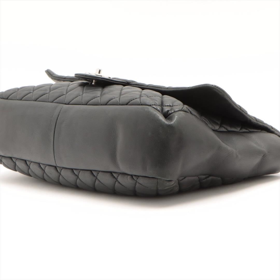 Chanel Black Quilted Soft Lambskin Leather Single Jumbo Flap Shoulder Bag. All available information is listed in the description and shown in the photos. Black quilted soft Lambskin leather Chanel Jumbo Single Flap shoulder bag with silver-tone hardware, a zipped pocket at back, woven leather and chain-link shoulder strap, an interlocking CC turn-lock closure at front, taupe satin lining and a zipped pocket inside.