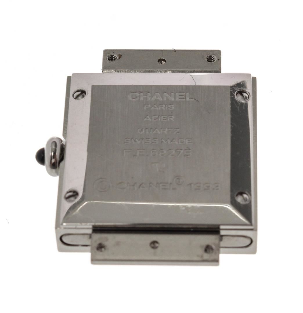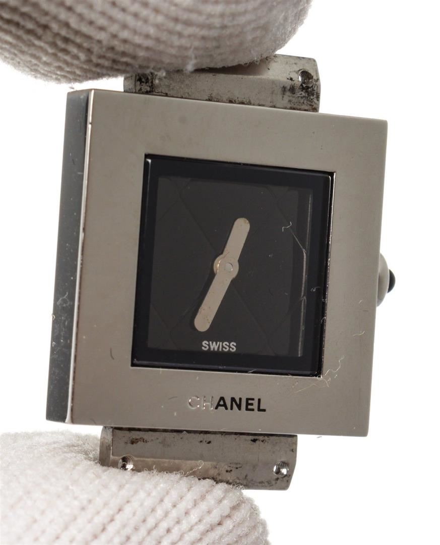 Chanel Black Silver Dial Quartz Ladies Watch with silver-tone hardware.