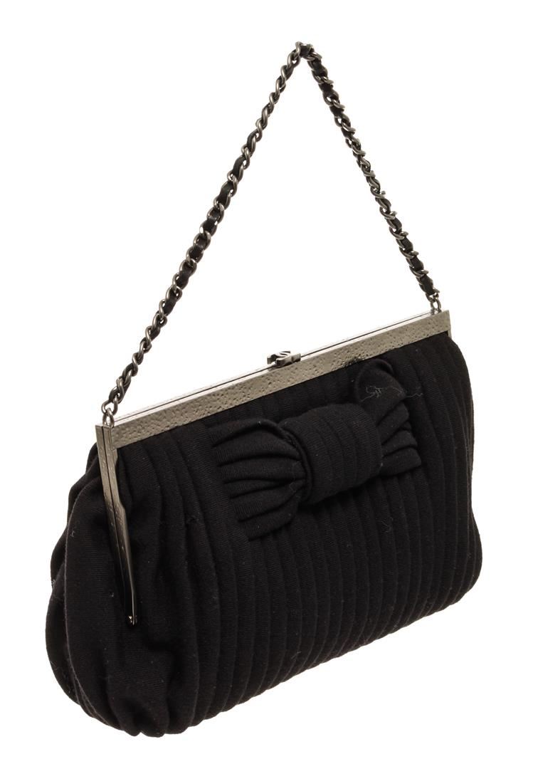 Chanel Black Suede Bow Motiff CC Shoulder Bag. All available information is listed in the description and shown in the photos. Chanel Black Suede Bow Motiff CC Shoulder Bag with black and silver chain, silver hardware, snap closure.