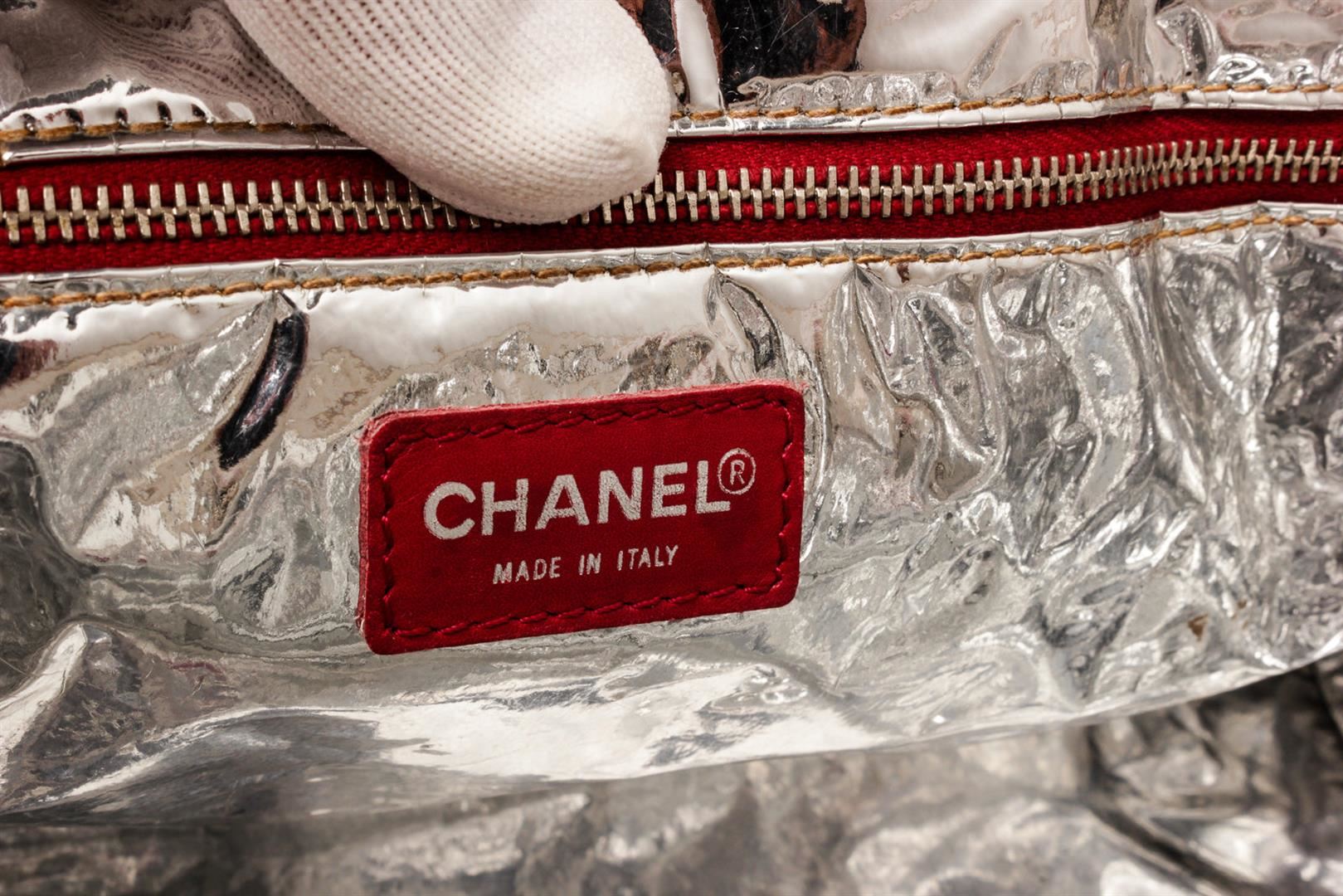Chanel Black White Denim CC Shopper Tote Bag. All available information is listed in the description and shown in the photos. Chanel Black White Denim CC Shopper Tote Bag with leather, gold-tone hardware, trim tan vachetta leather, interior slip pocket, chain shoulder strap and flap closure.