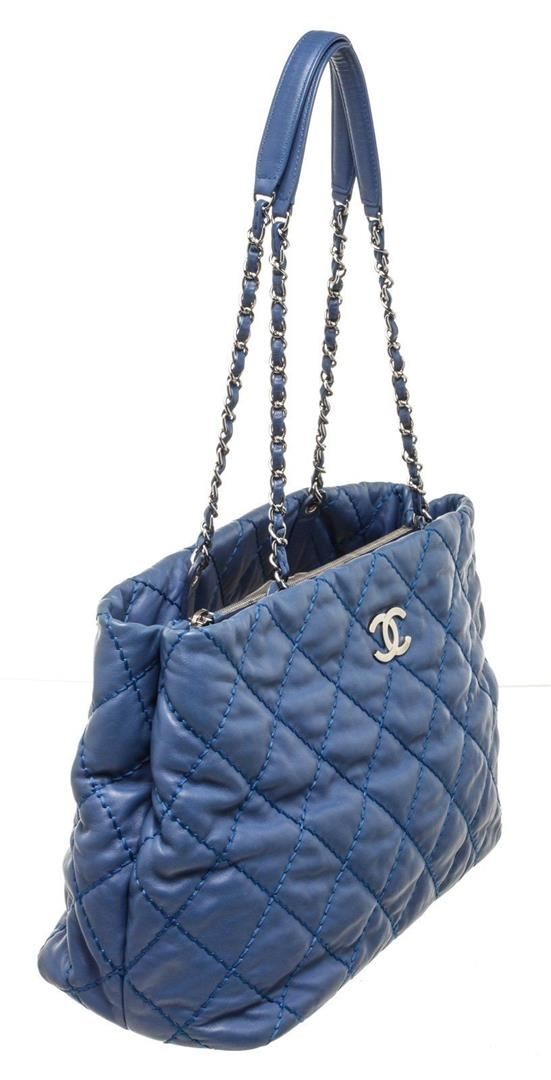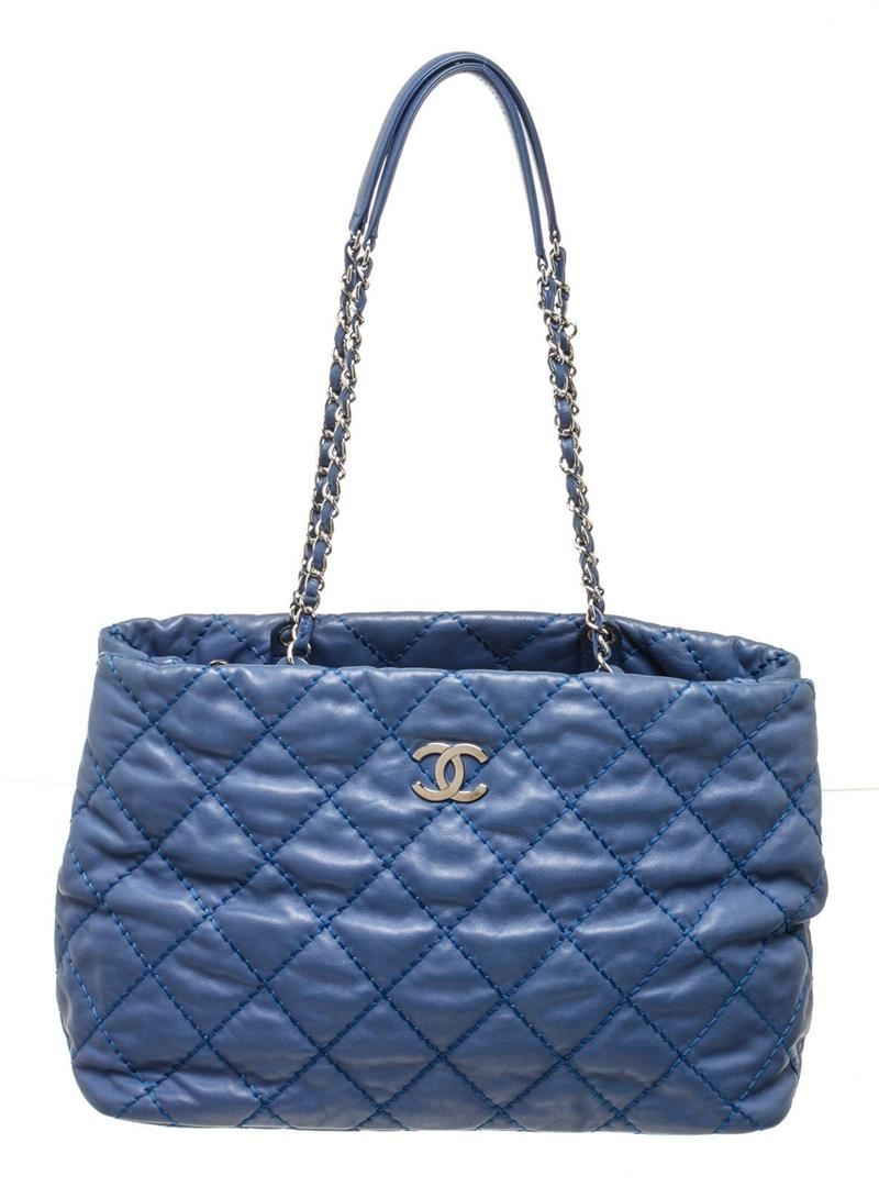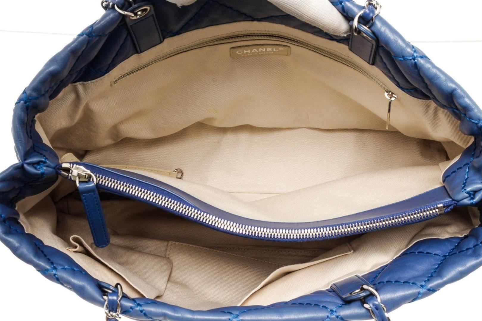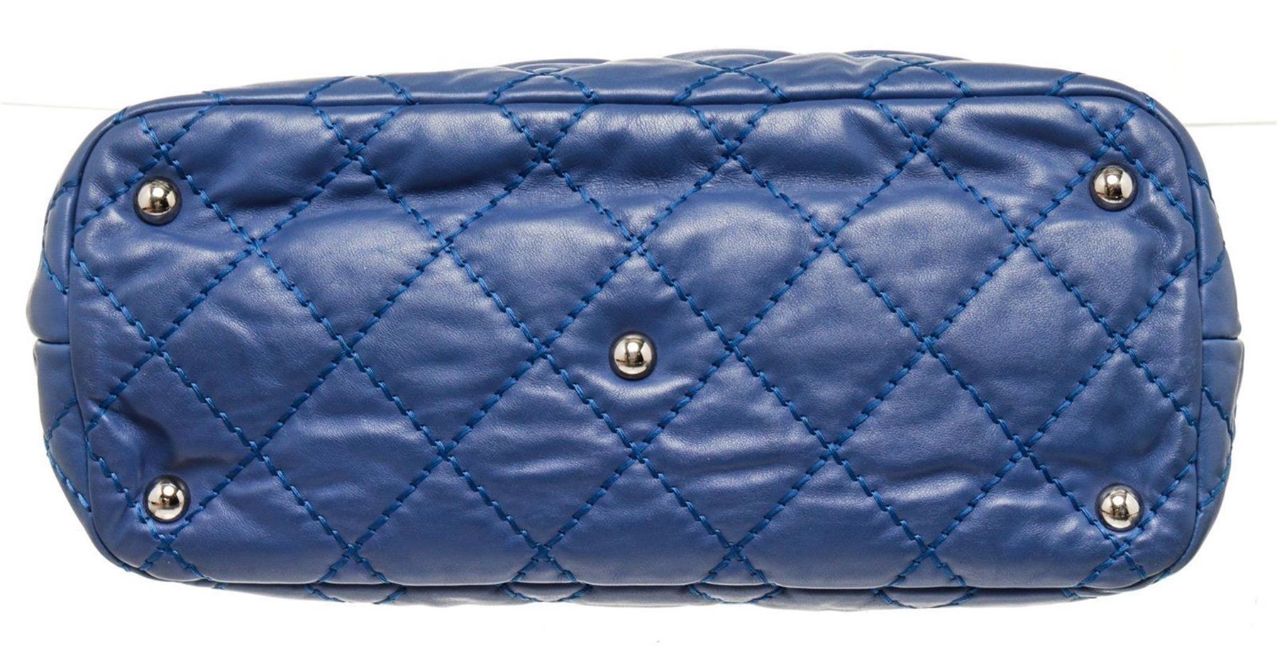 Chanel Blue Quilted Lambskin Boy Camera Shoulder Bag with leather, gold-tone hardware, trim leather, interior slip pocket, chain shoulder strap and zipper closure. Measurements: 11 in / 28 cm 3 in / 8 cm 9 in / 23 cm Condition: Pre-Owned Good