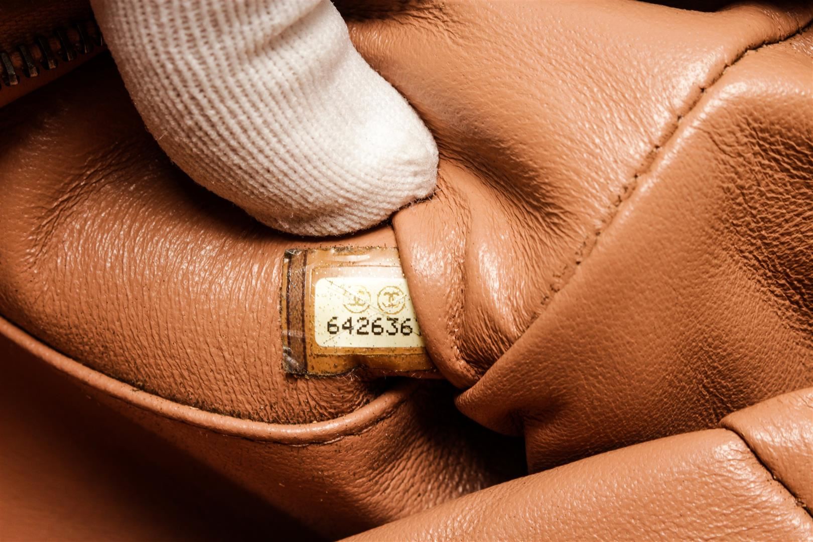 One Chanel Brown Black Quilted Caviar Mini Boston Bowler Bag. Item is sold AS-IS. All available information is listed in the description and shown in the photo. Chanel Brown Black Quilted Caviar Mini Boston Bowler Bag with brass hardware, foot base, exterior zip pocket, Chanel scripted logo at the front, brown leather lining, dual rolled leather handles, zip closure at the top. .