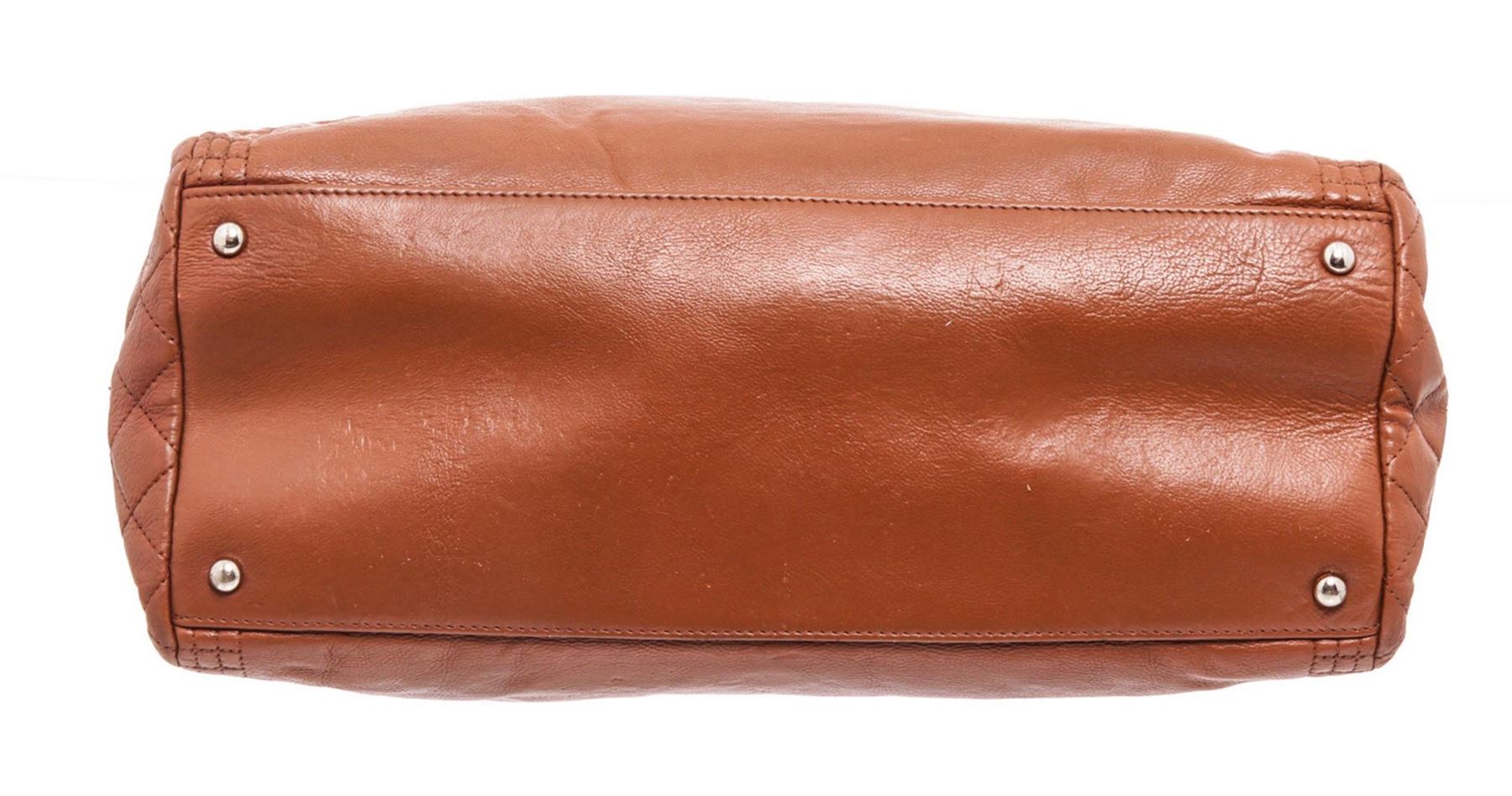 Chanel Brown Caviar Leather Chain CC Shoulder Bag. All available information is listed in the description and shown in the photos. Chanel Brown Caviar Leather Chain CC Shoulder Bag with gold-tone hardware, leather trim, interior flap pockets, chain leather shoulder strap, and flap closure. Please note: Bag has been redyed, peeling and creases on the quilted sections of the bag, some interior staining. Measurements: Length: 4 in / 10 cm Width: 11 in / 28 cm 8 in / 20 cm Condition: Pre-Owned Good overall, please see photographs for detail.