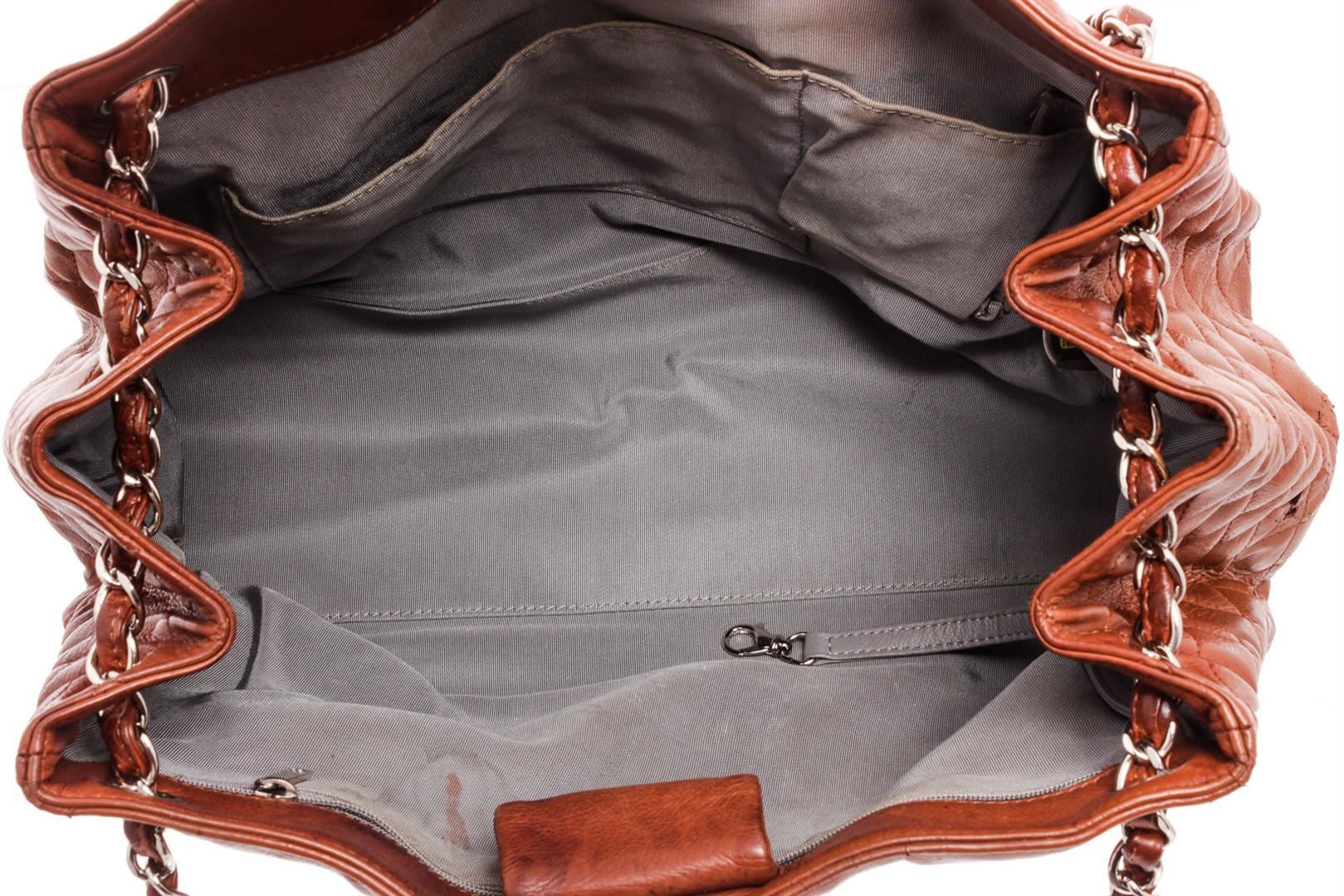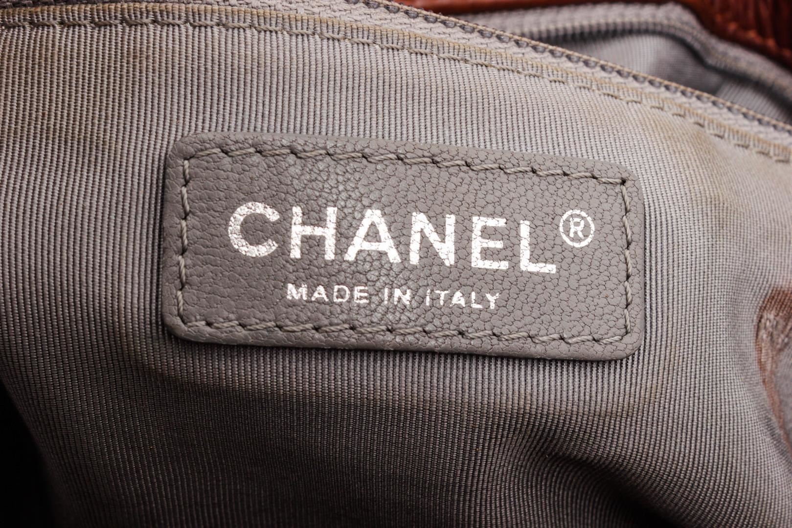 Chanel Brown Caviar Leather Chain CC Shoulder Bag. All available information is listed in the description and shown in the photos. Chanel Brown Caviar Leather Chain CC Shoulder Bag with gold-tone hardware, leather trim, interior flap pockets, chain leather shoulder strap, and flap closure. Please note: Bag has been redyed, peeling and creases on the quilted sections of the bag, some interior staining. Measurements: Length: 4 in / 10 cm Width: 11 in / 28 cm 8 in / 20 cm Condition: Pre-Owned Good overall, please see photographs for detail.