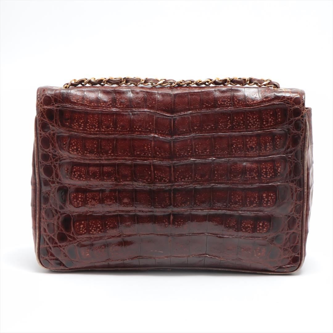 One Chanel Brown Crocodile Leather CC Envelope Single Flap Shoulder Bag. Item is sold AS-IS. All available information is listed in the description and shown in the photo. Brown crocodile leather Chanel CC Envelope Single Flap bag with brown leather trim, gold-tone hardware, woven chain-link and leather shoulder strap, brown leather lining two interior zip pockets and front flap CC turn-lock closure. Shoulder Strap Drop 18?, Height 7?, Width 10.5?, Depth 3?