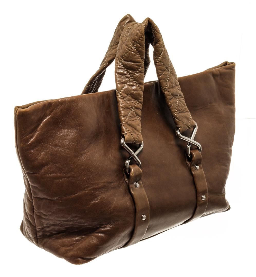 One Chanel Brown Lambskin Leather Wild Stitch Shoulder Bag. Item is sold AS-IS. All available information is listed in the description and shown in the photo. Chanel brown lambskin leather wild stitch shoulder bag features a lambskin leather exterior, a front exterior quilted pocket with a twist lock closure, quilted flat leather handles, a top magnetic snap button closure, silver-tone hardware, black fabric lining, and an interior slip pocket. Height: 15.35" Width: 16.53" Depth: 0.39", Shoulder Handle Drop: 4.72" / 39 x 42 x 1 Cm