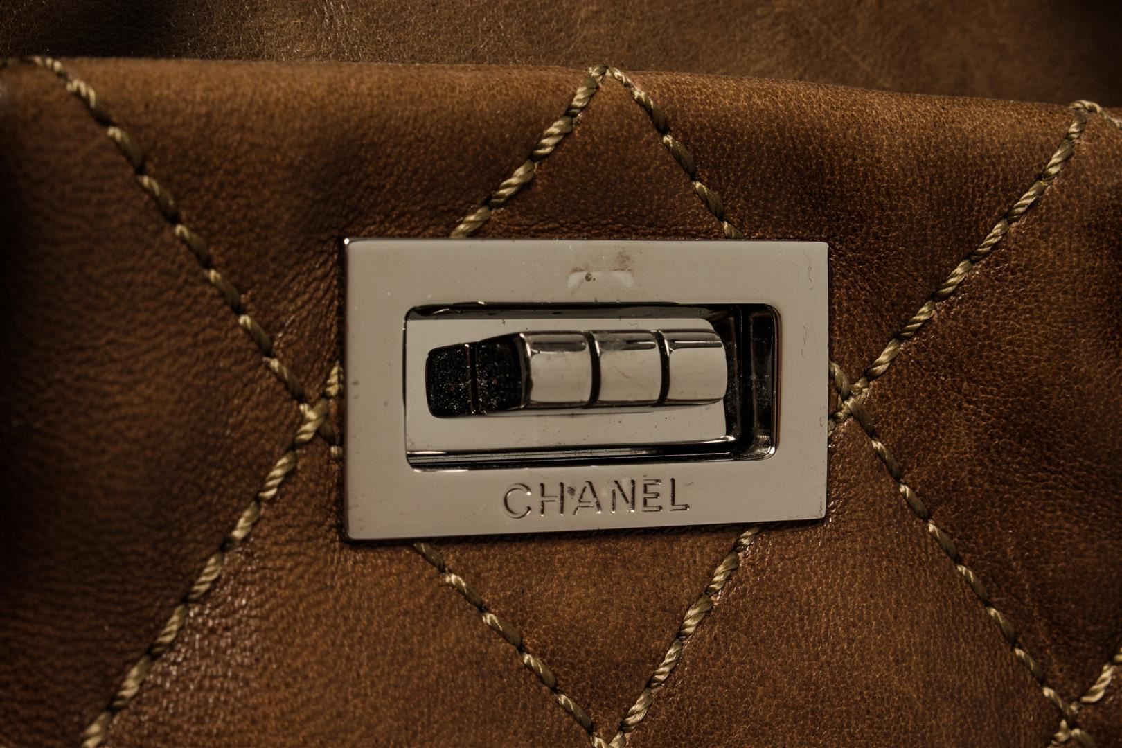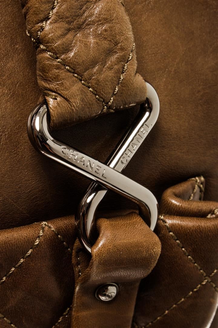 One Chanel Brown Lambskin Leather Wild Stitch Shoulder Bag. Item is sold AS-IS. All available information is listed in the description and shown in the photo. Chanel brown lambskin leather wild stitch shoulder bag features a lambskin leather exterior, a front exterior quilted pocket with a twist lock closure, quilted flat leather handles, a top magnetic snap button closure, silver-tone hardware, black fabric lining, and an interior slip pocket. Height: 15.35" Width: 16.53" Depth: 0.39", Shoulder Handle Drop: 4.72" / 39 x 42 x 1 Cm