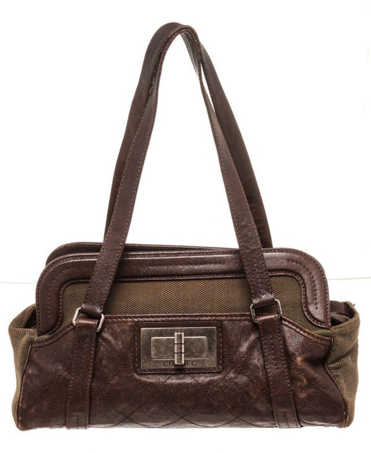 Chanel Brown Leather Reissue Shoulder Bag with material leather, gold-tone hardware, interior slip pocket, shoulder strap and zipper closure.
