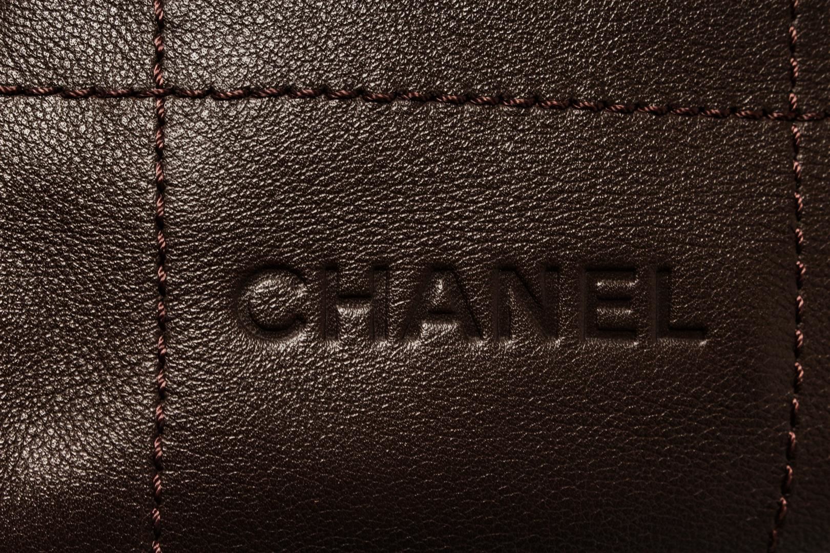 One Chanel Brown Leather Square Stitch CC Boston Bag. Item is sold AS-IS. All available information is listed in the description and shown in the photo. Chanel brown leather square stitch CC Boston bag with leather exterior, brown Chanel patterned fabric lining, embossed logo on bottom left front exterior, silver-tone hardware, two top handles, and a zip closure. Chanel Square Stitch CC Boston Bag Leather Large. Wear on exterior corners, loss of shape and scuffs on exterior, wear and scuffs on handles. Light wear in interior, scratches and discoloration on hardware. Size: H 43.1" x W 96.52" x D 25.4" / H 17cm x W 38cm x D 10cm Handle 40cm.