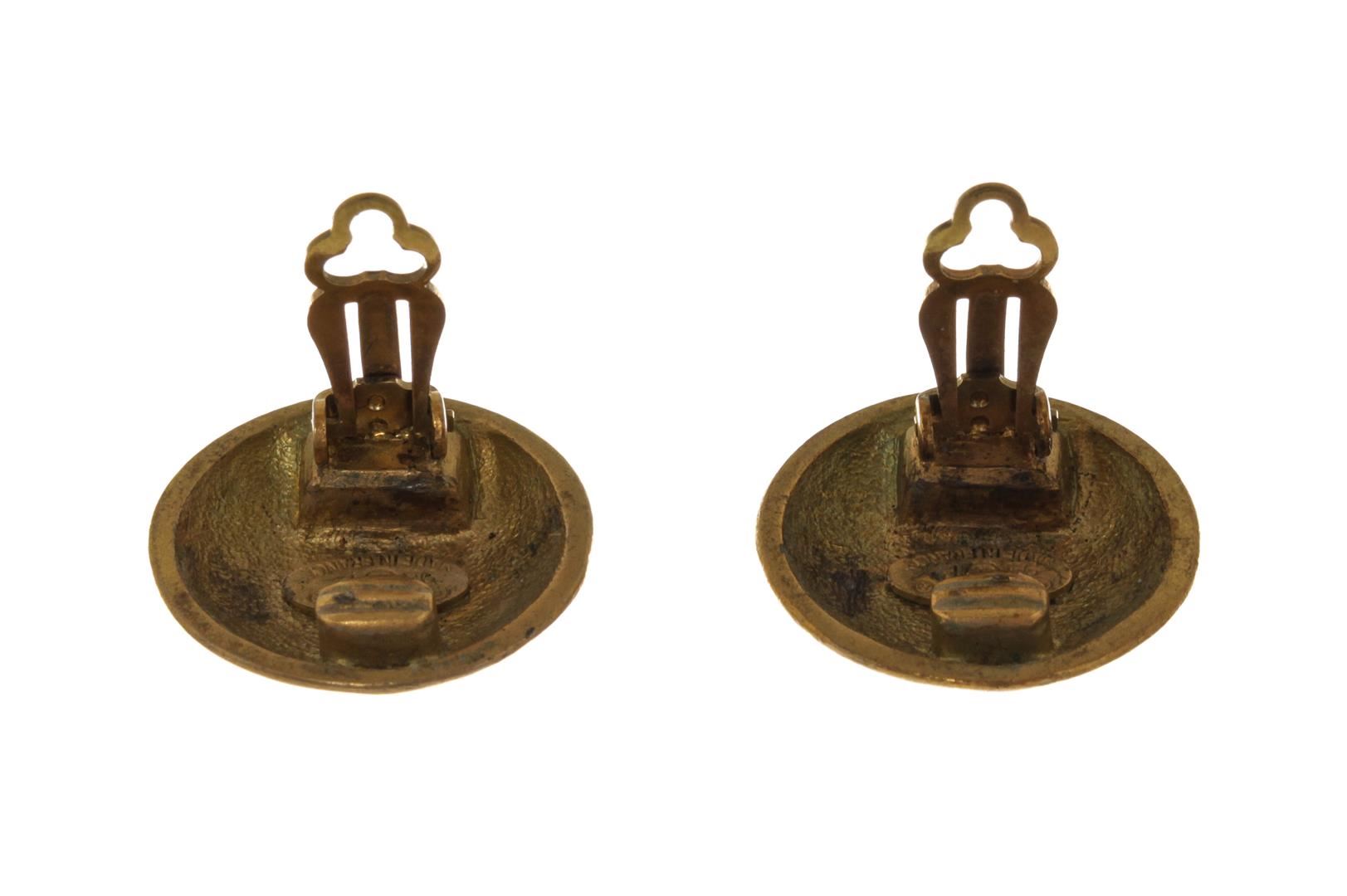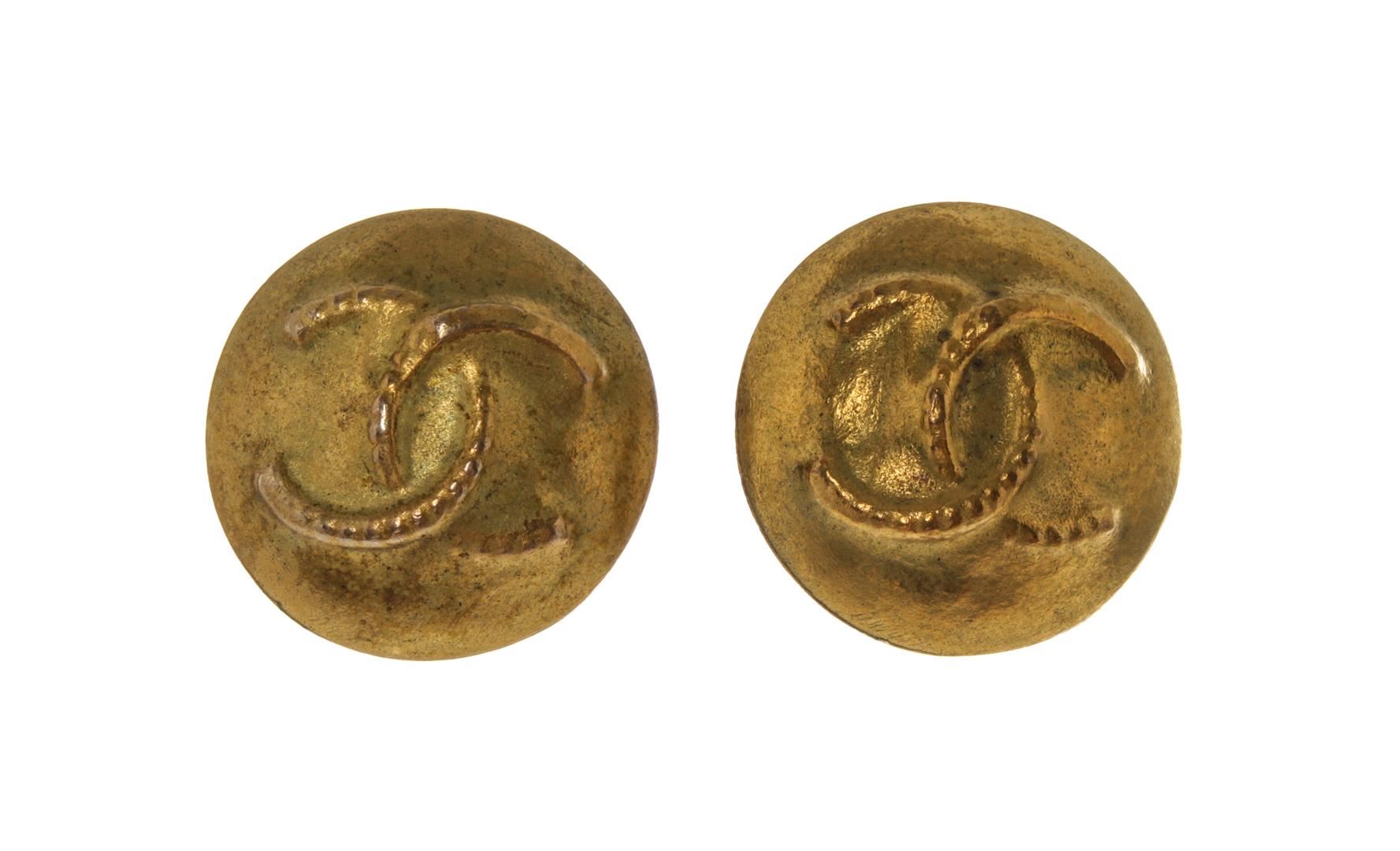 Chanel CC Disc Logo Earrings. All available information is listed in the description and shown in the photos. Chanel CC Disc Logo Earrings with gold tone metal hardware.