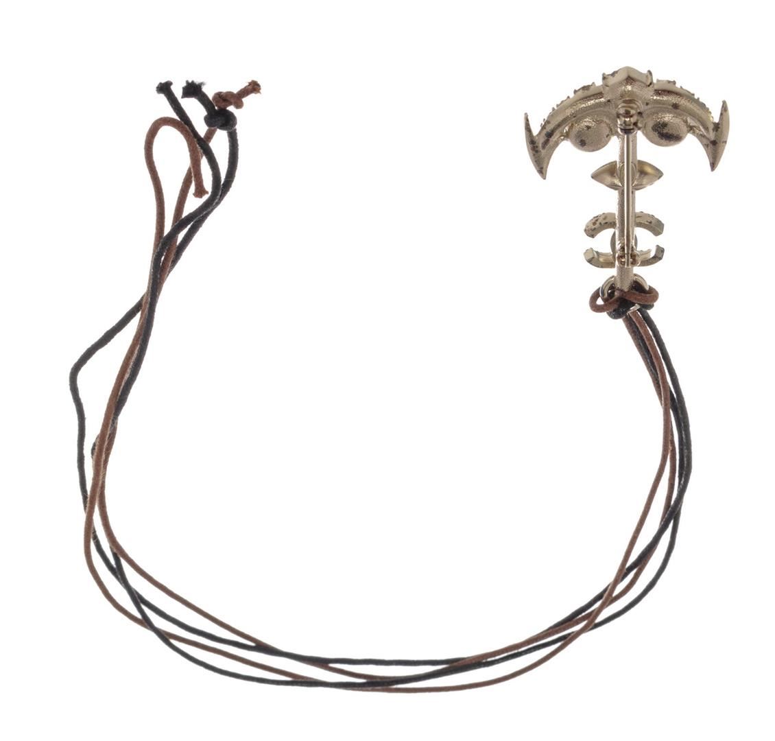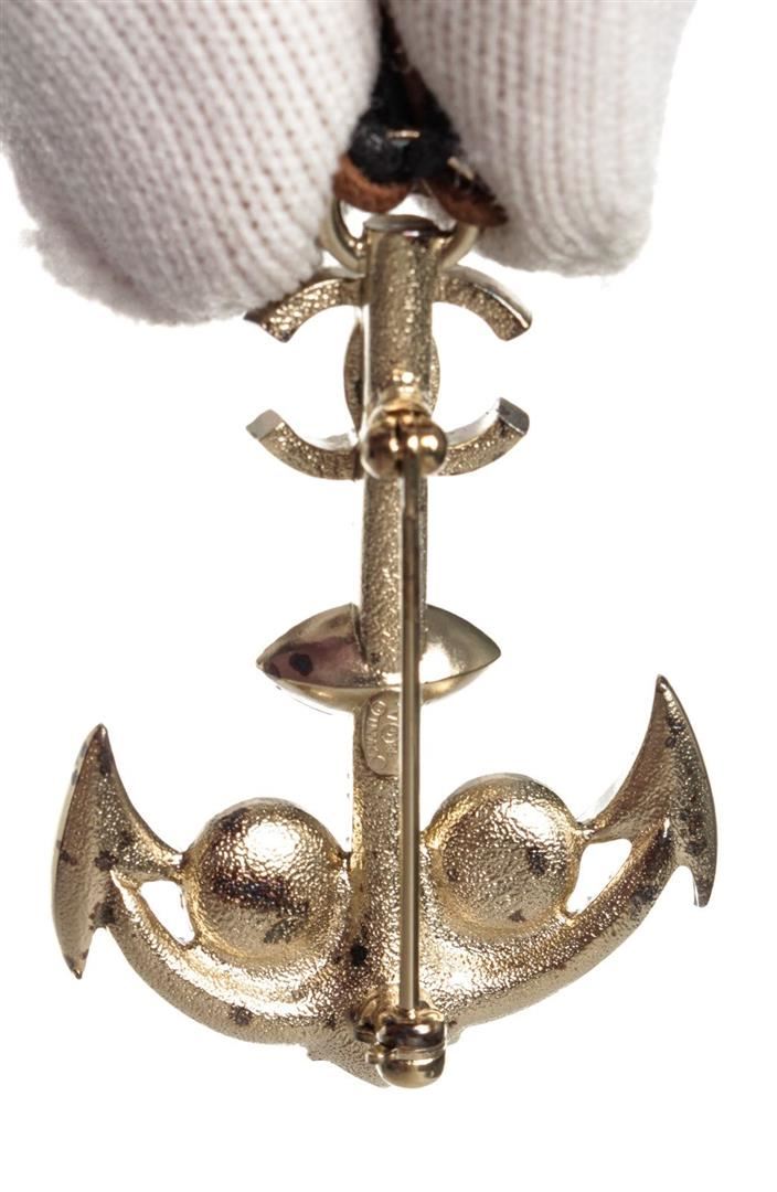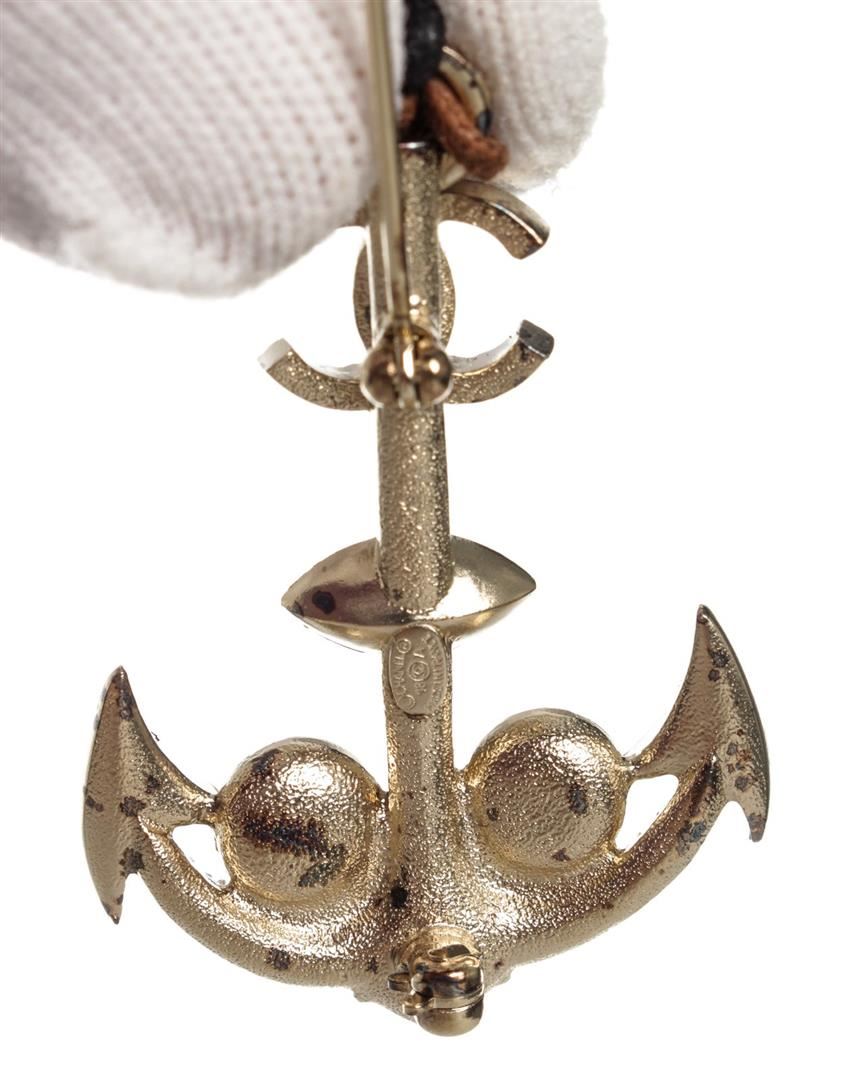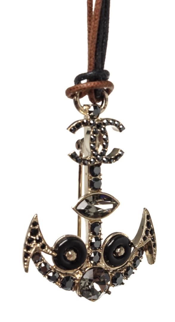 Chanel CC Gem Anchor Pendant Necklace features a CC logo anchor with black and grey crystals and multicolor straps.