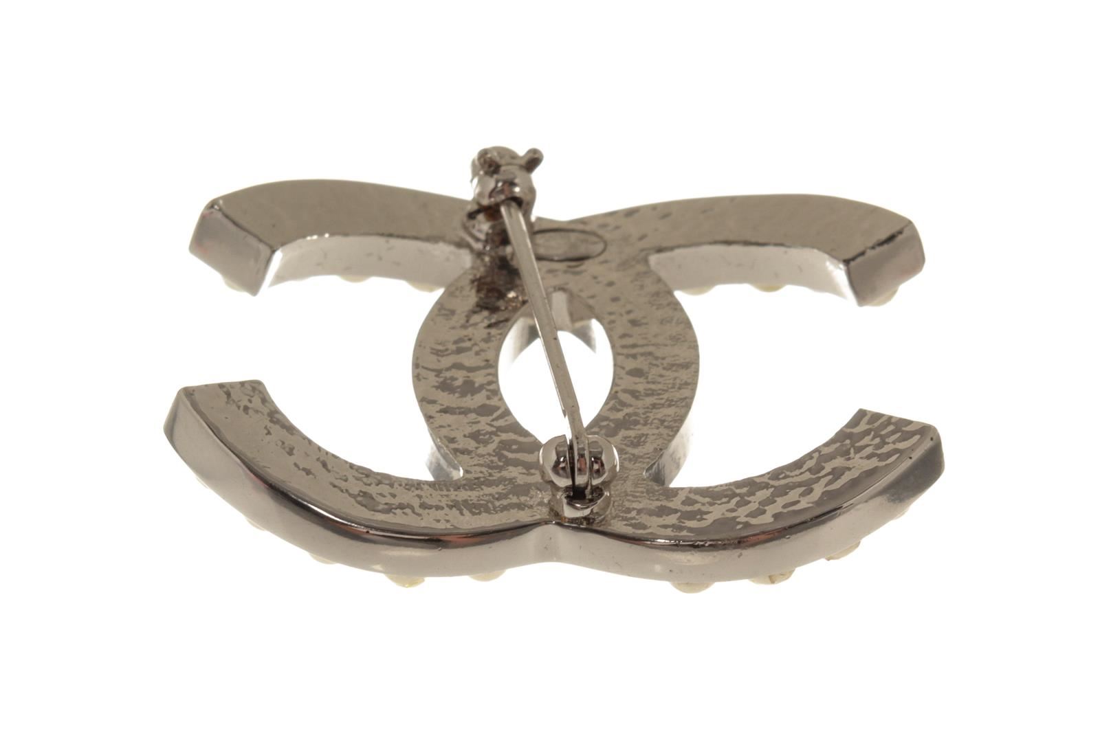 Chanel CC Pearl Brooch. All available information is listed in the description and shown in the photos. Chanel CC Pearl Brooch with faux pearls and silver tone metal hardware.