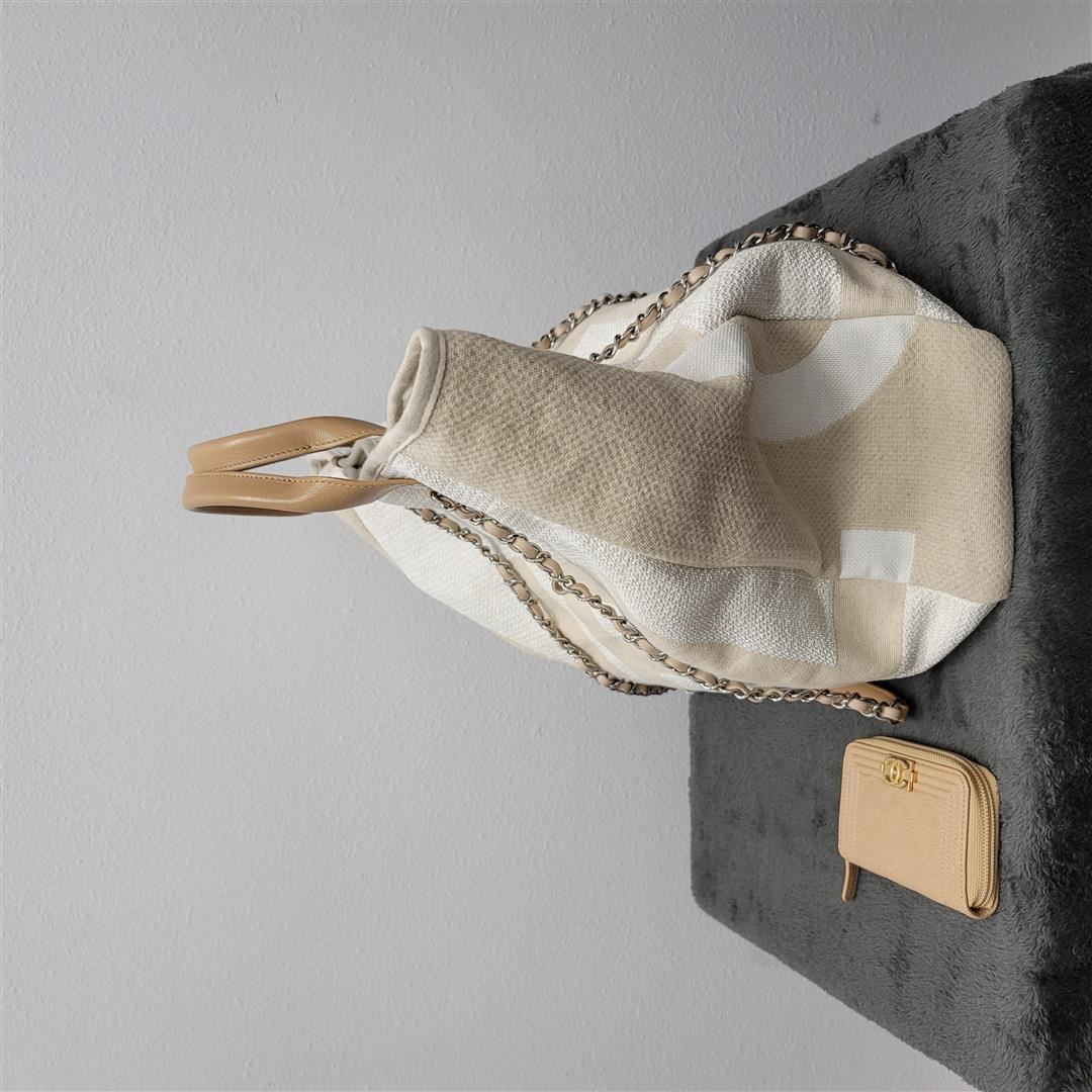 One Chanel CC SHW Canvas Tote Bag in Canvas Cream. Size: W: 38cm H: 38cm x D: 14.5cm (W: 15.0" x H: 15.0" x D: 5.7") Handle: 27cm (10.6") Shoulder: 82 (32.3")
