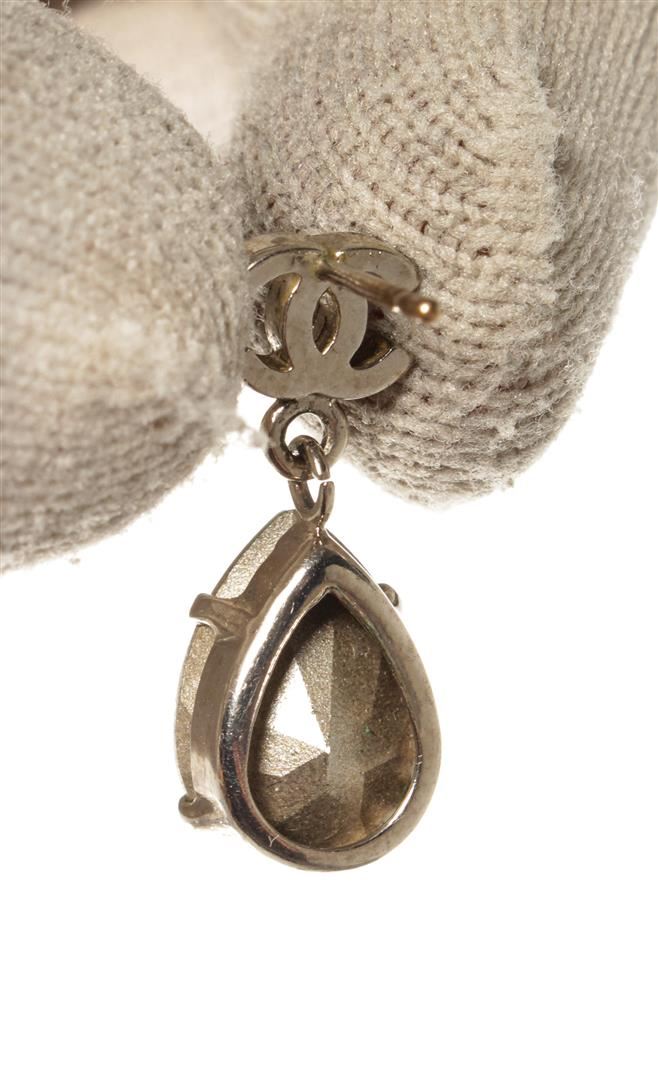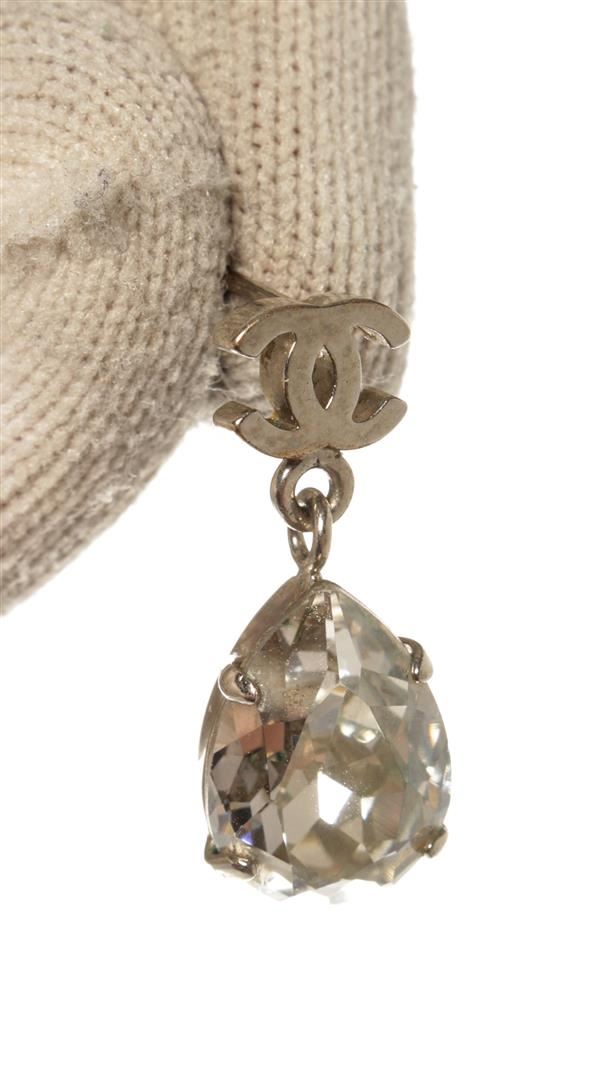 Chanel CC Silver Rhinestone Earrings. All available information is listed in the description and shown in the photos. Chanel CC Silver Rhinestone Earrings with silver tone metal hardware.