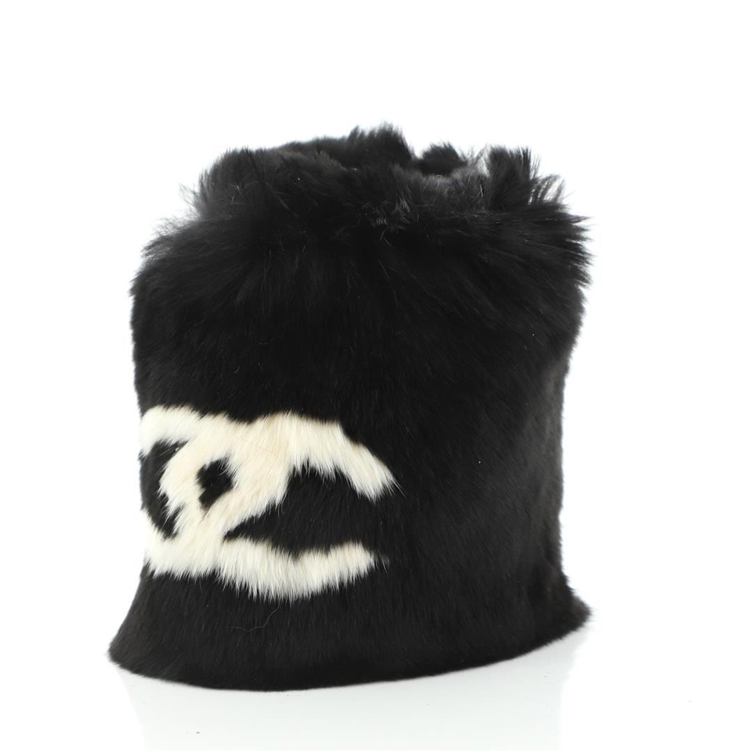 One Chanel CC Wristband Lapin Fur Black. Item is sold AS-IS. All available information is listed in the description and shown in the photo. Chanel CC Wristband Lapin Fur Black Condition Details: Minor balding throughout. Height 5", Width 9.5", Depth ", Strap Drop None