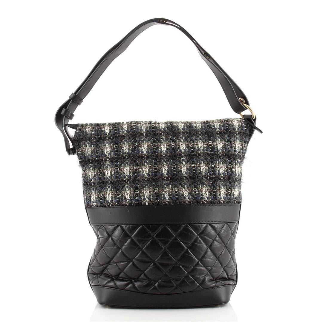 Chanel Casual Style Hobo Tweed and Quilted Aged Calfskin Large Black, Multicolor. All available information is listed in the description and shown in the photos. Chanel Casual Style Hobo Tweed and Quilted Aged Calfskin Large Black Tweed Calfskin