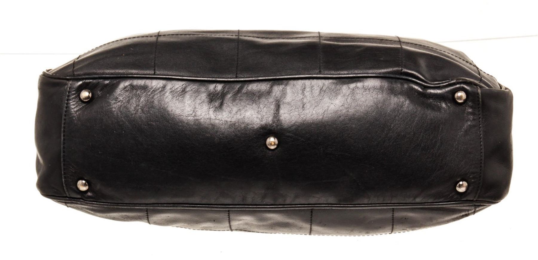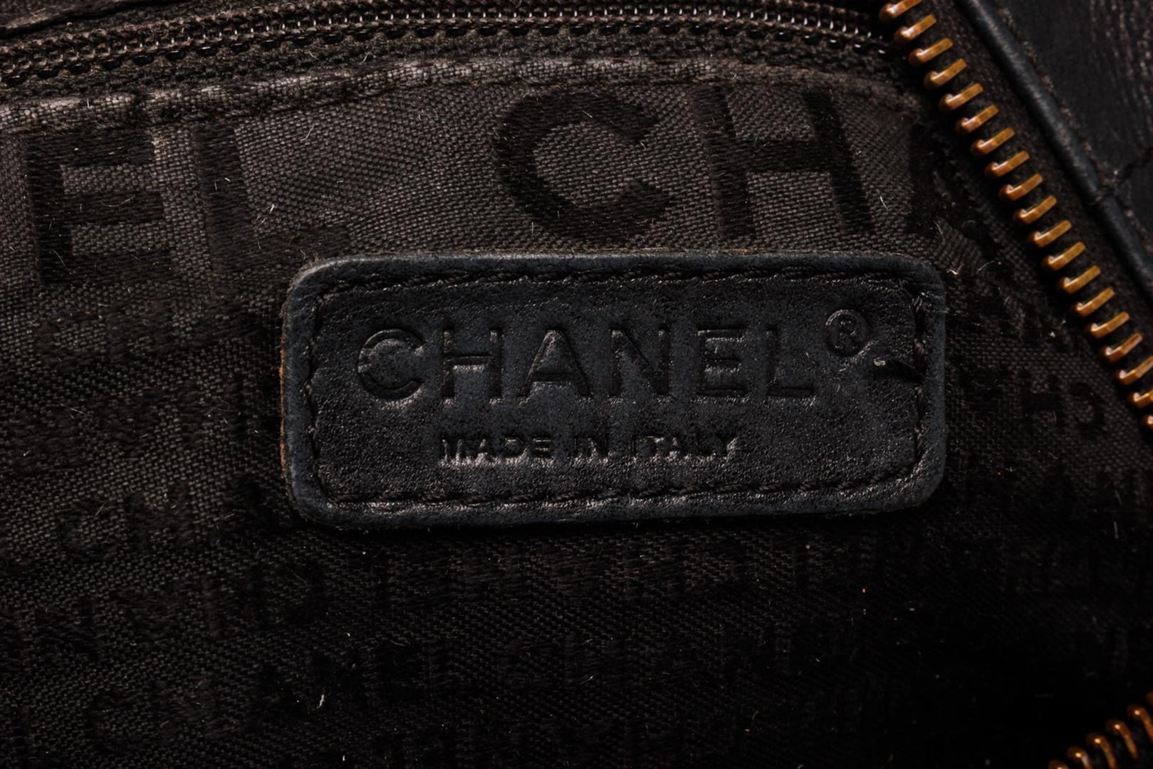 Chanel Chocolate Bar Boston Boston Bag Black Lambskin. Brand: Chanel, Style: Chocolate Bar Boston, Type: Boston Bag, Exterior Color: Black, Exterior Material: Lambskin, Exterior Pockets: None, Interior Color: Black, Interior Material: Fabric, Interior Pockets: One Slip, Closure: Zip, Handle/Strap Type: Top Handle, Length: 14.5, Width: 4, Height: 7, Handle Drop: 6. Condition: Leather is worn. Item is sold AS-IS and all information pertaining to this lot is available in the photos or this description.