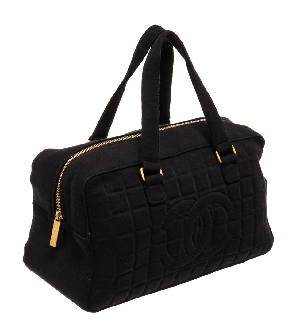 One Chanel Chocolate Bar Suede Boston Shoulder Bag. Item is sold AS-IS. All available information is listed in the description and shown in the photo. Chanel Chocolate Bar Suede Boston Shoulder Bag. Features gold hardware, black canvas interior, black suede straps, and a gold zipper closure.