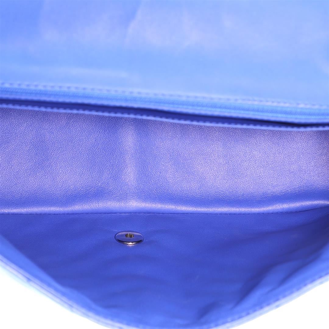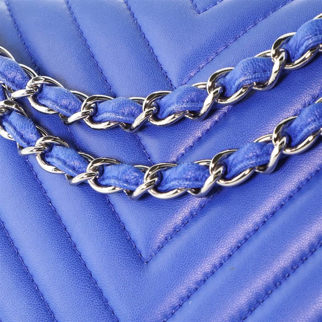 One Chanel Classic Single Flap Bag Chevron Lambskin Jumbo. Item is sold AS-IS. All available information is listed in the description and shown in the photo. Chanel Classic Single Flap Bag Chevron Lambskin Jumbo. Odor in interior. Creasing, wear and scuffs on exterior, underneath flap and in interior, small indentations on base and rear pocket, heavy wear on exterior and flap edges. Moderate wear on strap, scratches on hardware. 78848