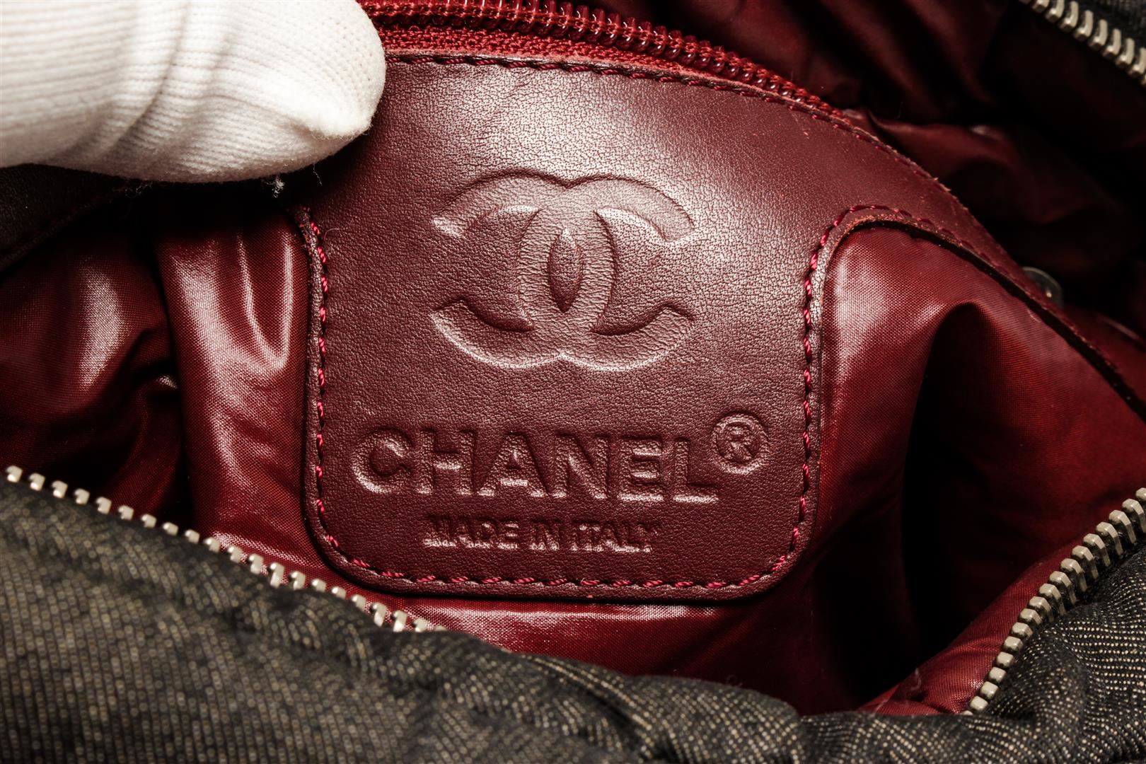 One Chanel Coco Cocoon Quilted Denim Messenger Bag. Item is sold AS-IS. All available information is listed in the description and shown in the photo. Chanel Coco Cocoon quilted denim messenger bag with adjustable straps, silver hardware, zipper and flap closure, and red nylon lining.