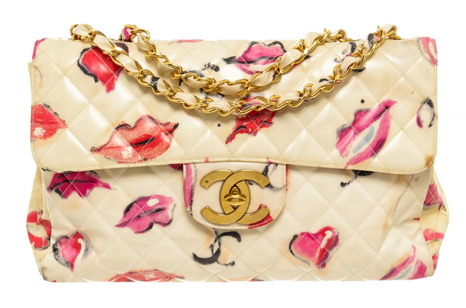 Chanel Cream Flap Lip Shoulder Bag. All available information is listed in the description and shown in the photos. Chanel Cream Flap Lip Shoulder Bag with leather lining, zipper pocket interior, slip pocket interior, quilted, chain/leather strap, gold hardware and turn lock closure. This bag is in fair condition. Please refer to photos.