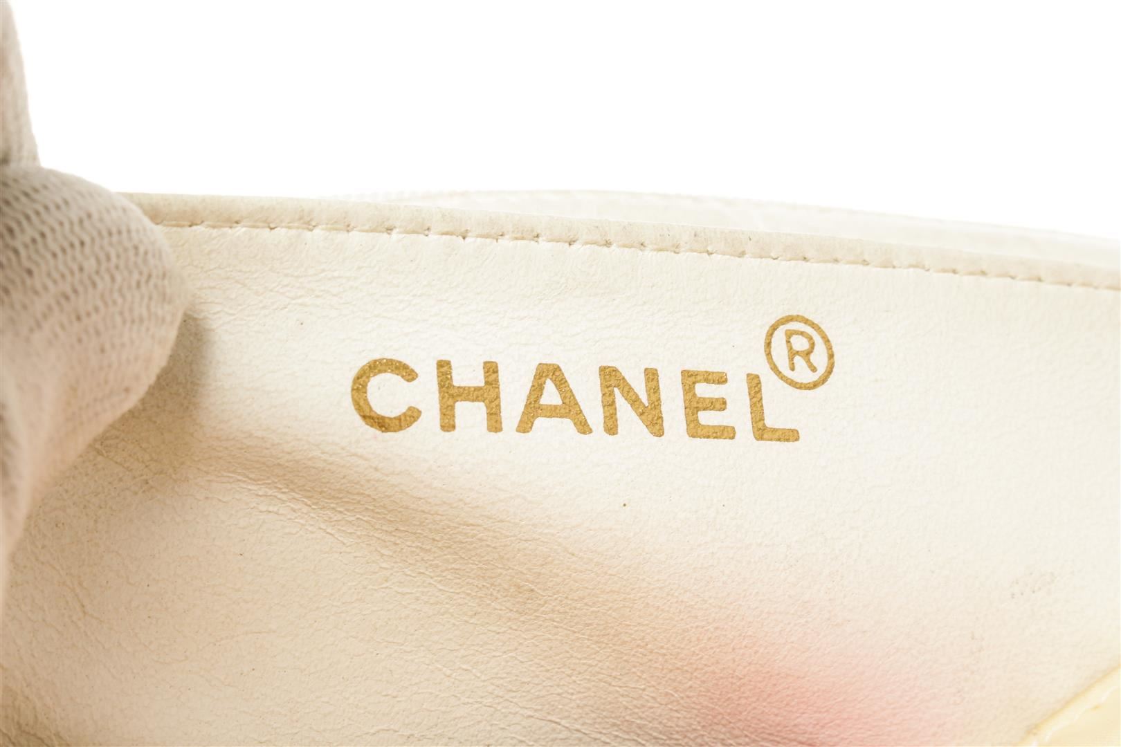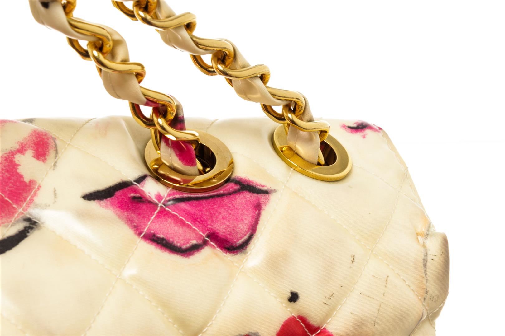 Chanel Cream Flap Lip Shoulder Bag. All available information is listed in the description and shown in the photos. Chanel Cream Flap Lip Shoulder Bag with leather lining, zipper pocket interior, slip pocket interior, quilted, chain/leather strap, gold hardware and turn lock closure. This bag is in fair condition. Please refer to photos.