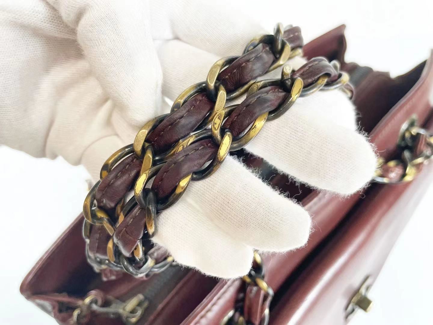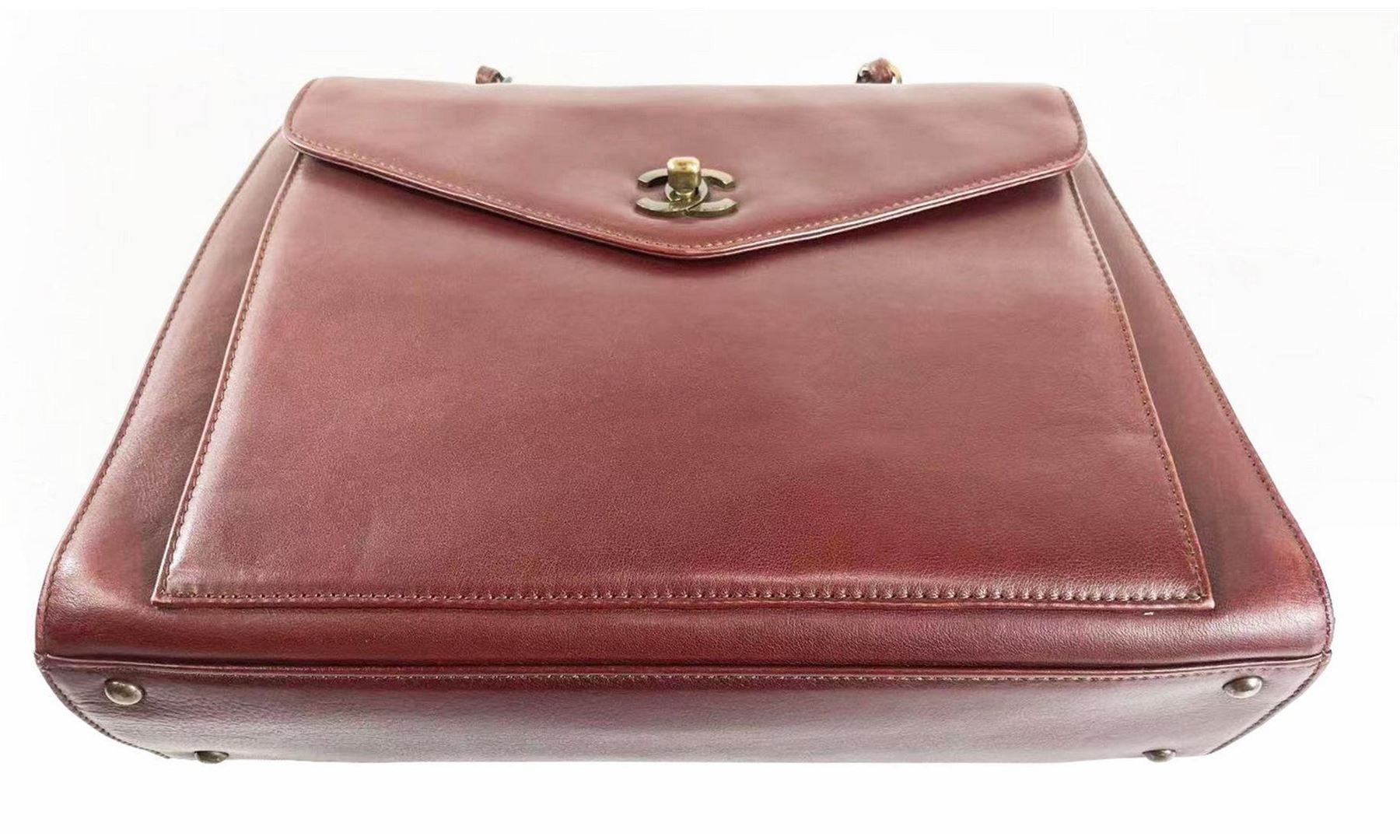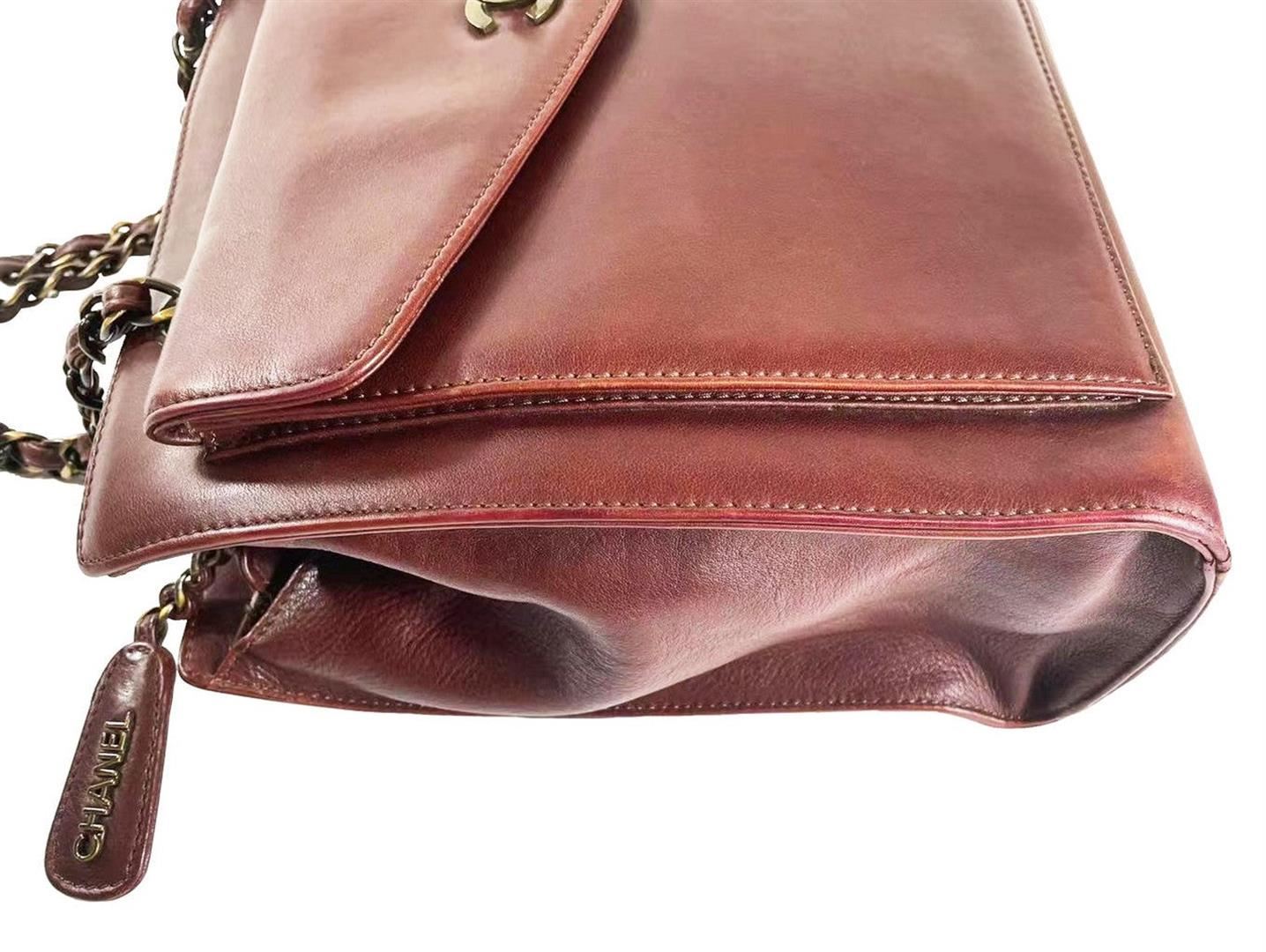 One Chanel Dark Red Leather Vintage Bordeaux Tote Bag. Item is sold AS-IS. All available information is listed in the description and shown in the photo. Vintage Chanel Dark Red Leather Bordeaux Tote with antiqued gold- tone hardware. 12.2" x 9.8" x 3.9"/31cm x 25cm x 10cm