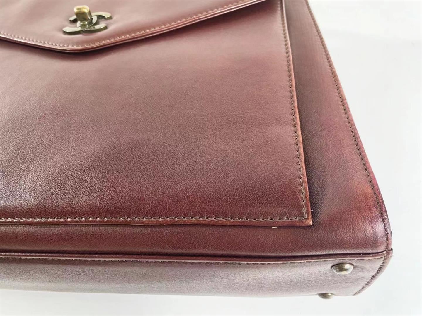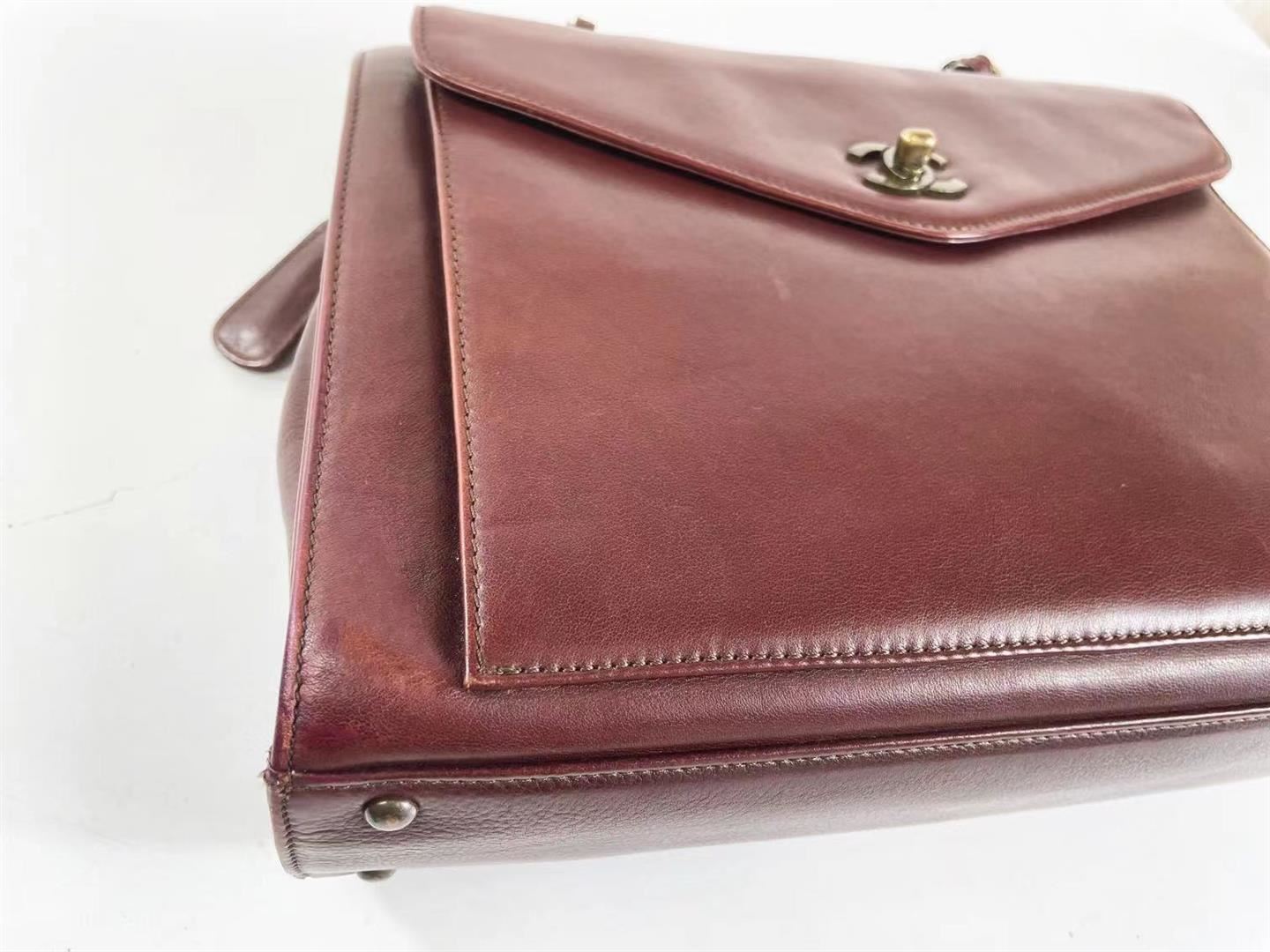 One Chanel Dark Red Leather Vintage Bordeaux Tote Bag. Item is sold AS-IS. All available information is listed in the description and shown in the photo. Vintage Chanel Dark Red Leather Bordeaux Tote with antiqued gold- tone hardware. 12.2" x 9.8" x 3.9"/31cm x 25cm x 10cm