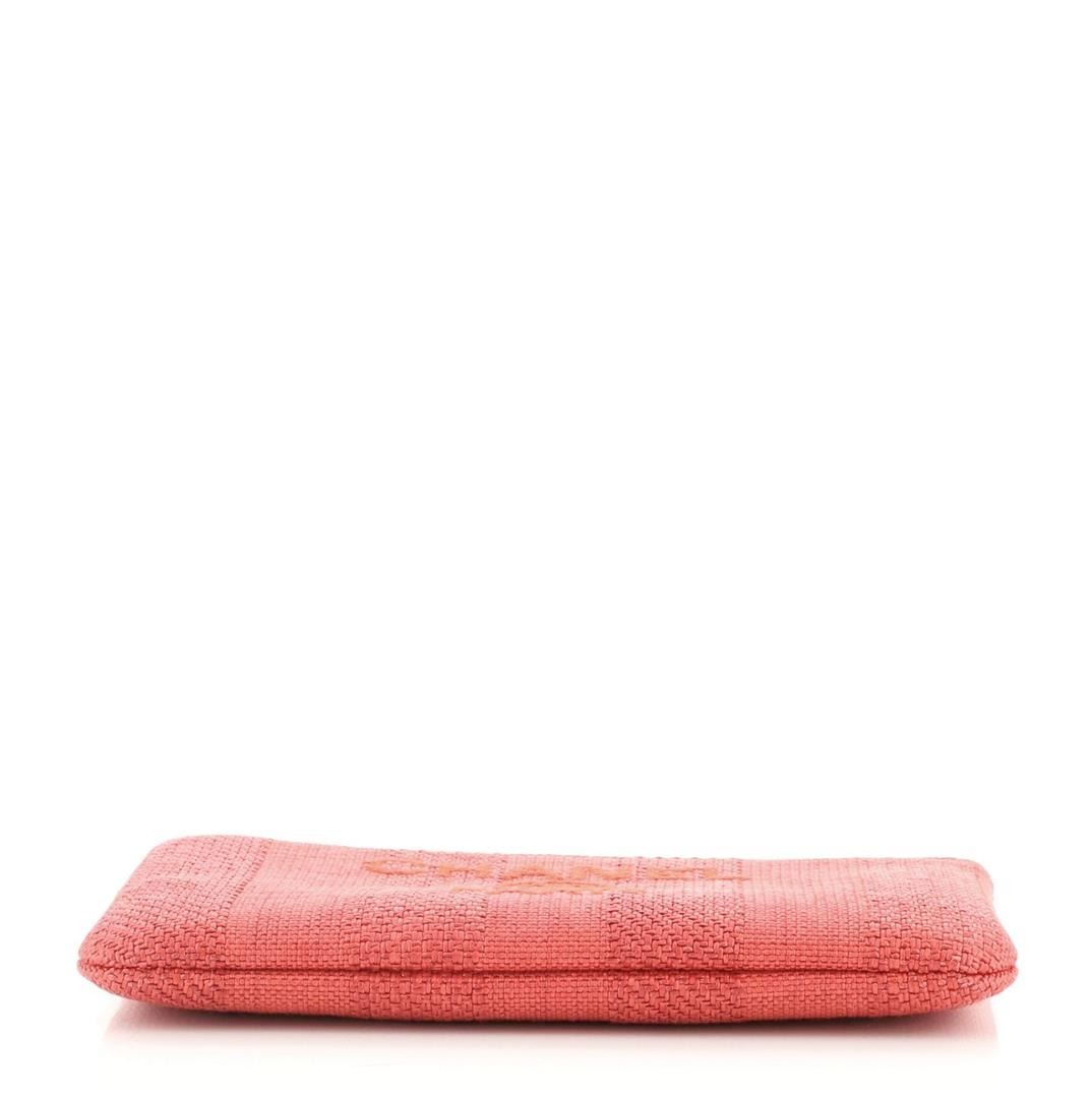 One Chanel Deauville Pouch Striped Mixed Fibers Small Red. Item is sold AS-IS. All available information is listed in the description and shown in the photo. Chanel Deauville Pouch Striped Mixed Fibers Small Red Fiber Condition Details: Slight odor in interior. Discoloration and wear on exterior corners, scratches on hardware. Height ", Width ", Depth ", Strap Drop -