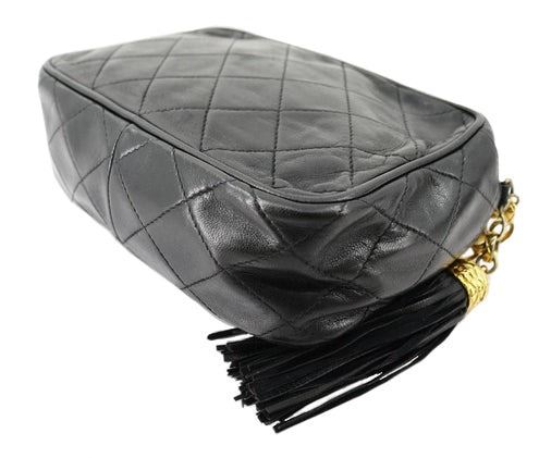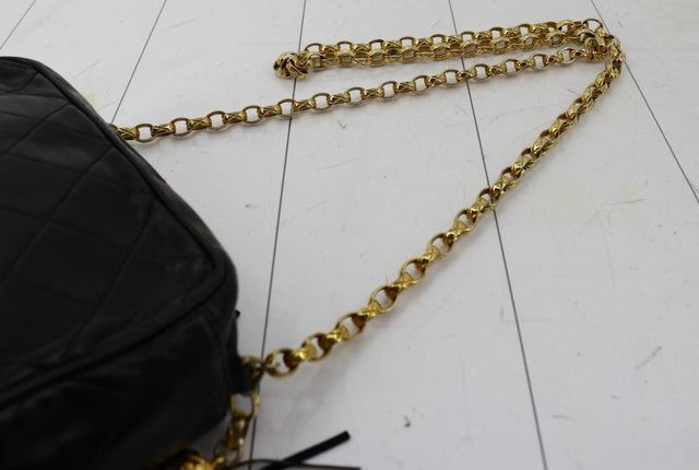 Chanel Fringe Camera Bag Shoulder Bag. Brand: Chanel, Style: Fringe Camera Bag, Type: Shoulder Bag, Exterior color: Black, Exterior material: Lambskin, Interior color: Black, Interior material: Leather, Length: 9, Width: 2.5, Height: 7. Item is sold AS-IS