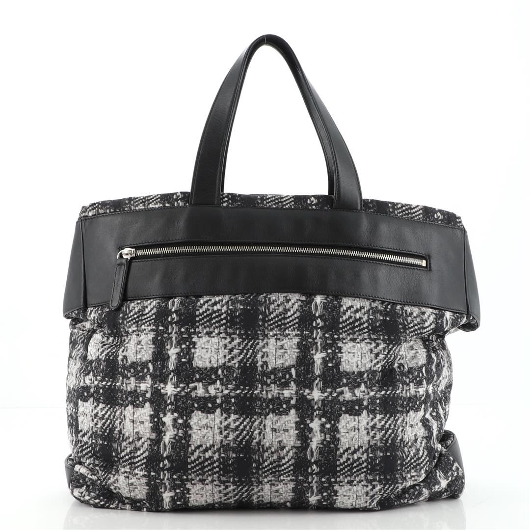 One Chanel Front Zip Pocket Tote Printed Nylon Large. Item is sold AS-IS. All available information is listed in the description and shown in the photo. Chanel Front Zip Pocket Tote Printed Nylon Large. Odor in interior. Minor scuffs and creasing on leather trims, slight discoloration on base and opening corners, scratches on hardware. 78848