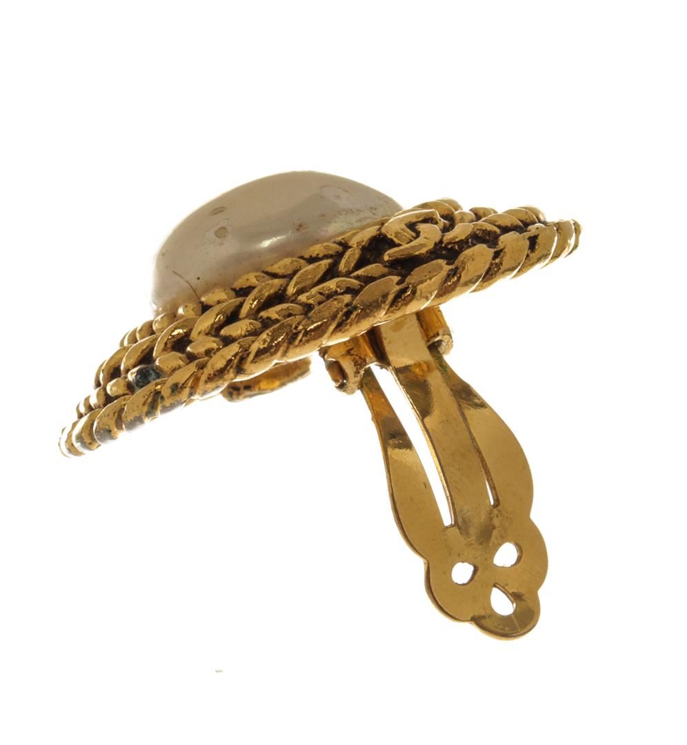 Chanel Gold CC Pearl Braided Disc Earrings. All available information is listed in the description and shown in the photos. Chanel Gold CC Pearl Braided Disc Earrings with gold tone metal hardware, and faux pearls.