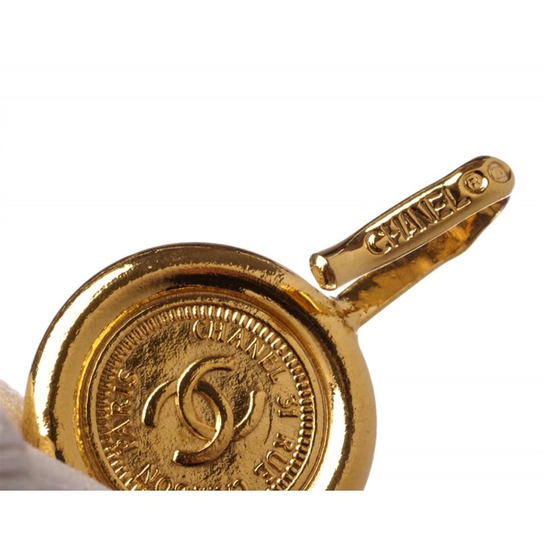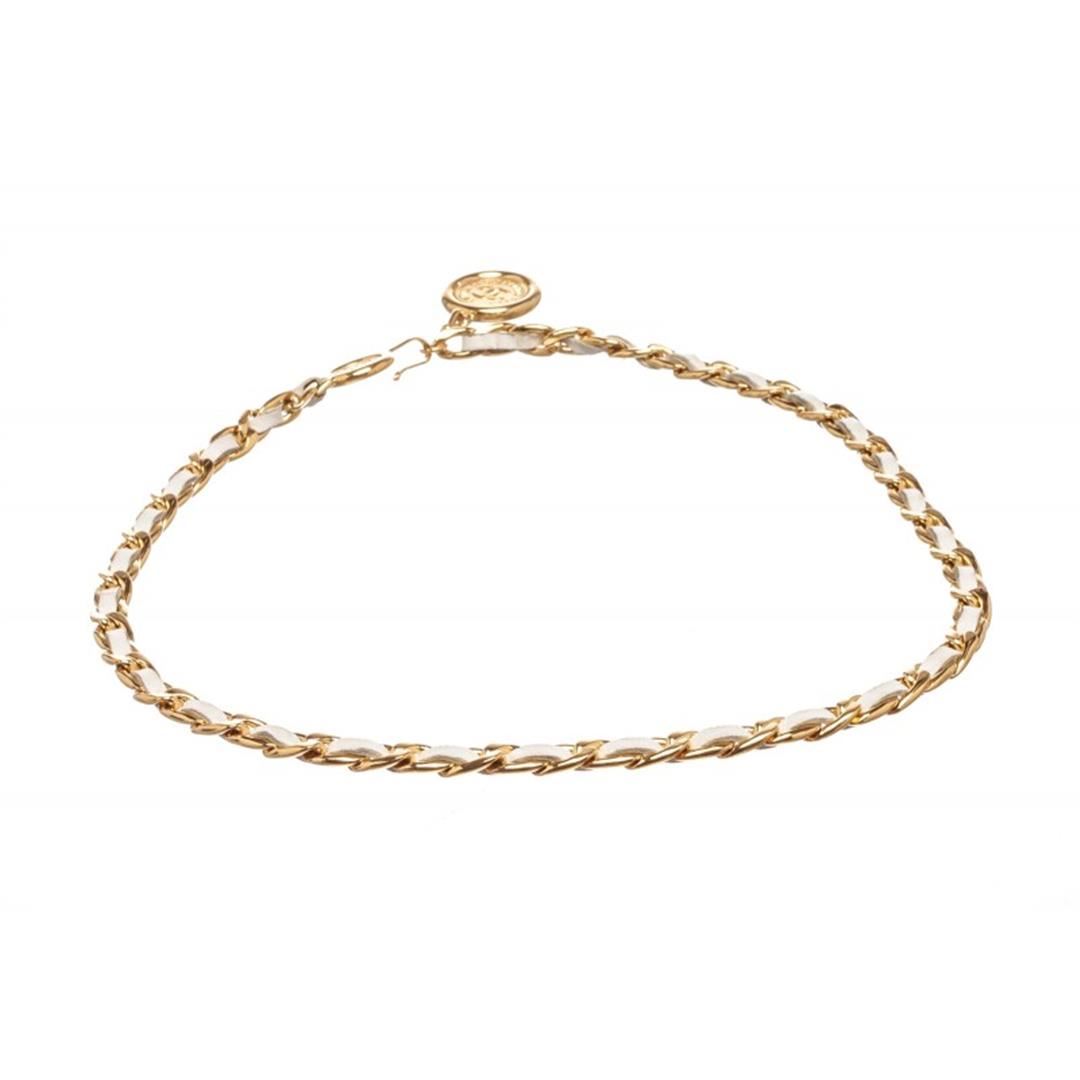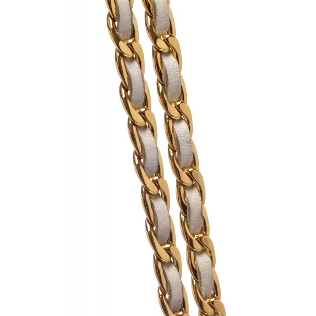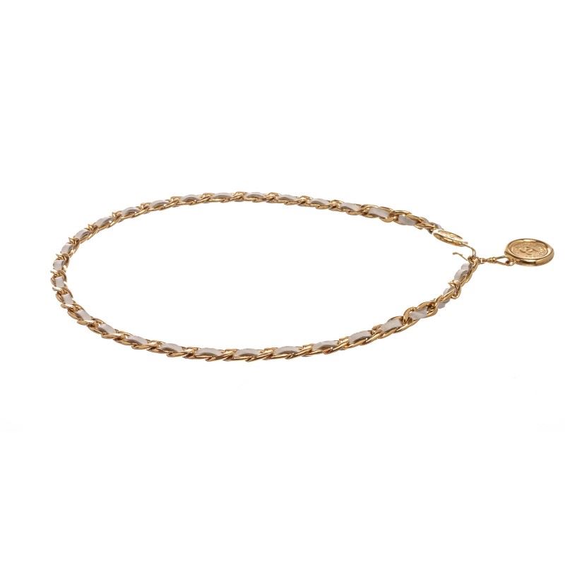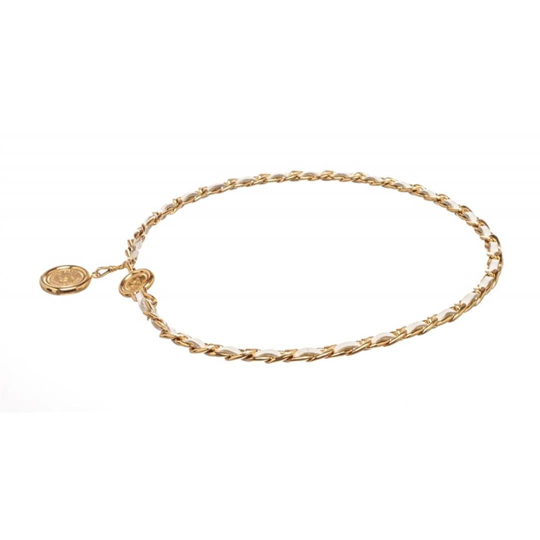 One Chanel Gold Chain Link and White Leather 31 Rue Cambon Medallion Belt. Adjustable belt, white leather and chain link.
