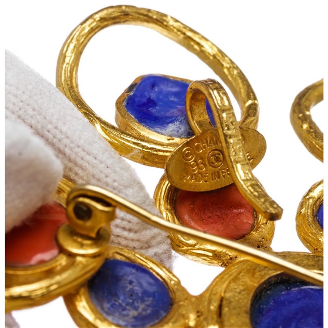 One Chanel Gold Faux Stones Flower Vintage Brooch 93P. Pin back vintage flower brooch from 1993 Spring collection.