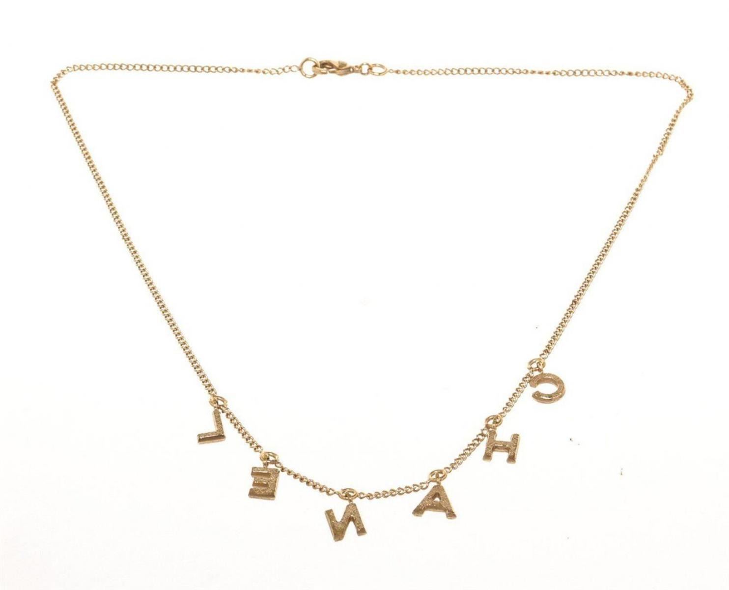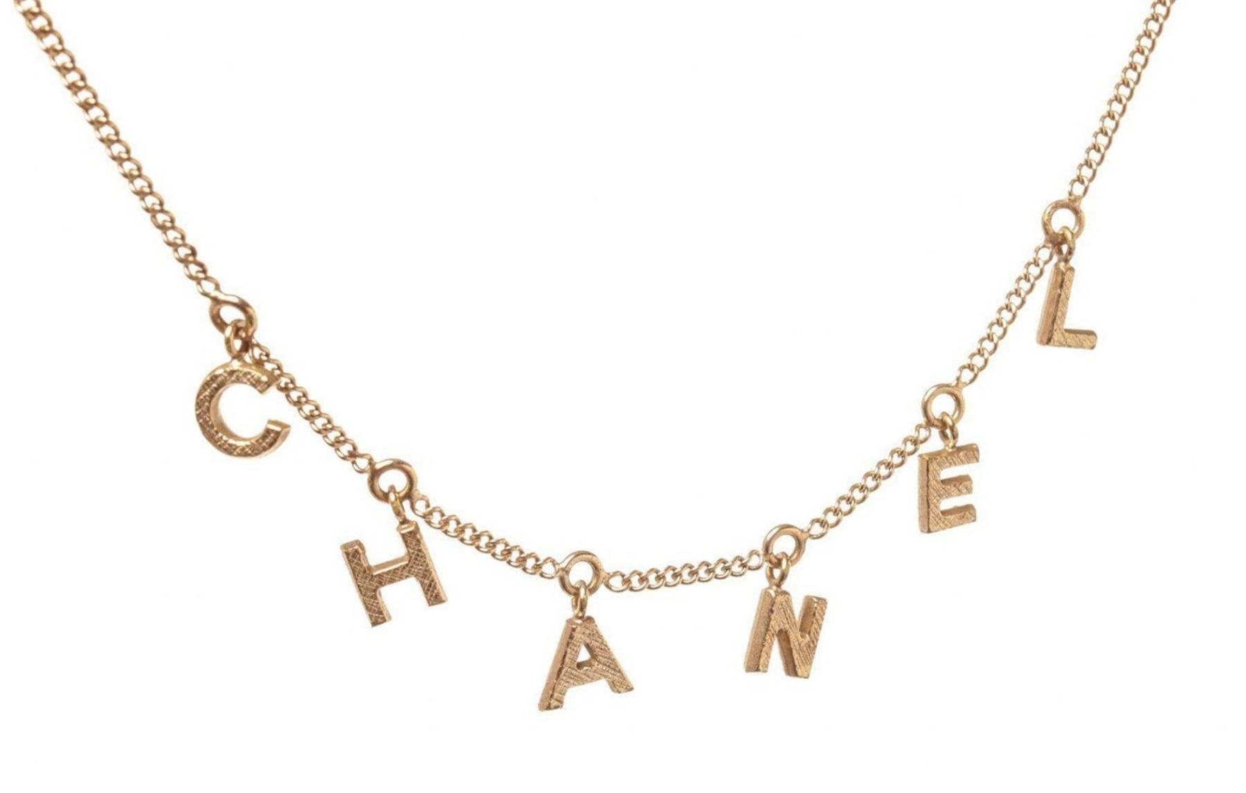 Chanel Gold Logo Necklace with round rhinestone-trimmed charm pendant with black enamel 'CC' logo. Lobster clasp closure.