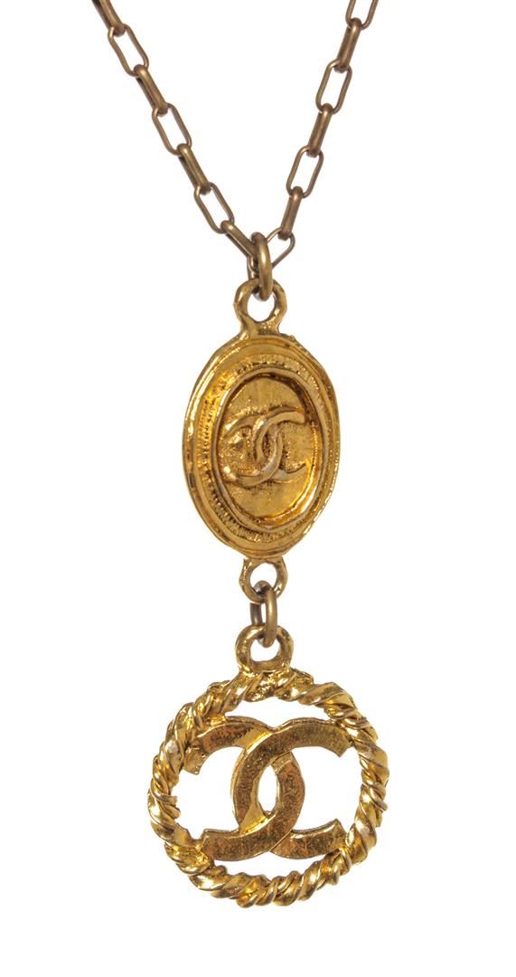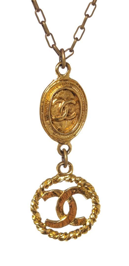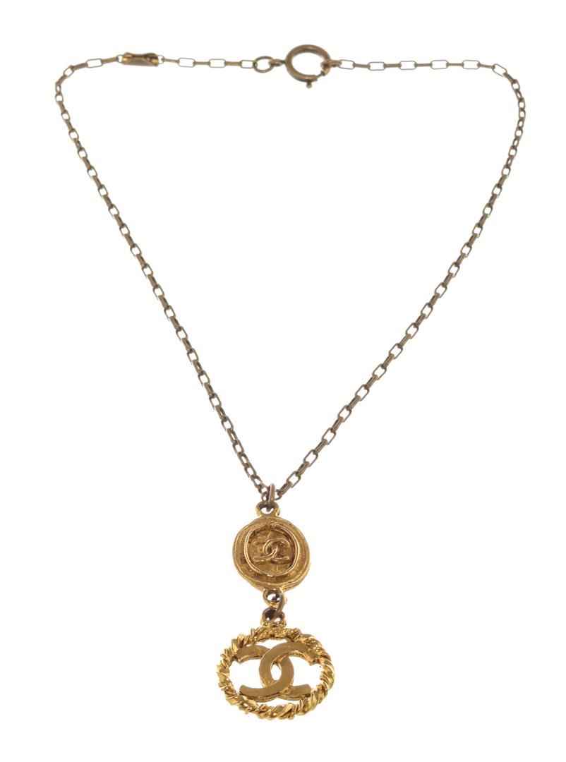 Chanel Gold Medallion Necklace. All available information is listed in the description and shown in the photos. Chanel Gold Medallion Necklace with two pendants, gold-tone metal hardware and link.