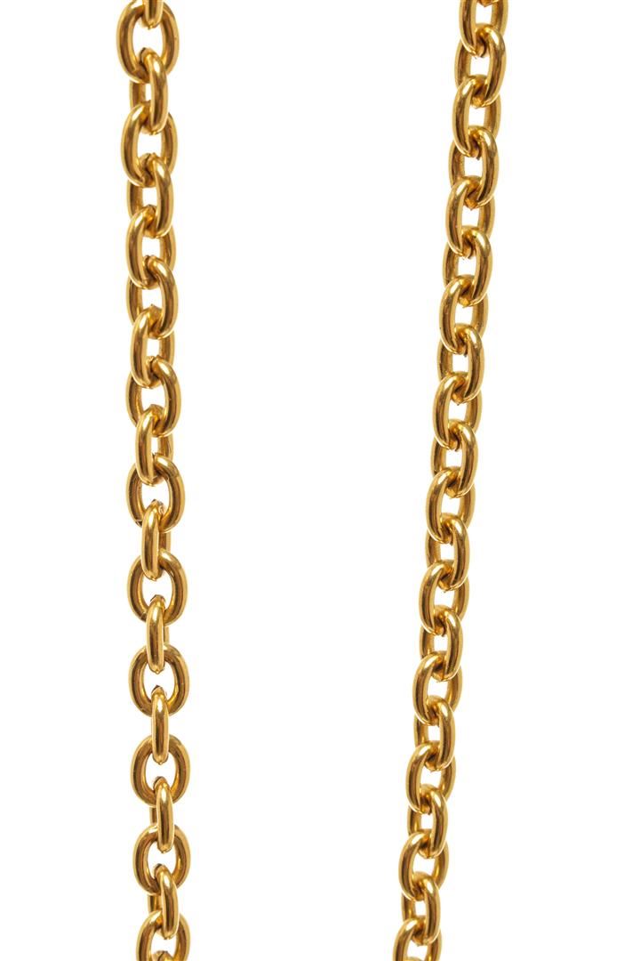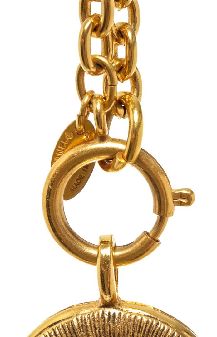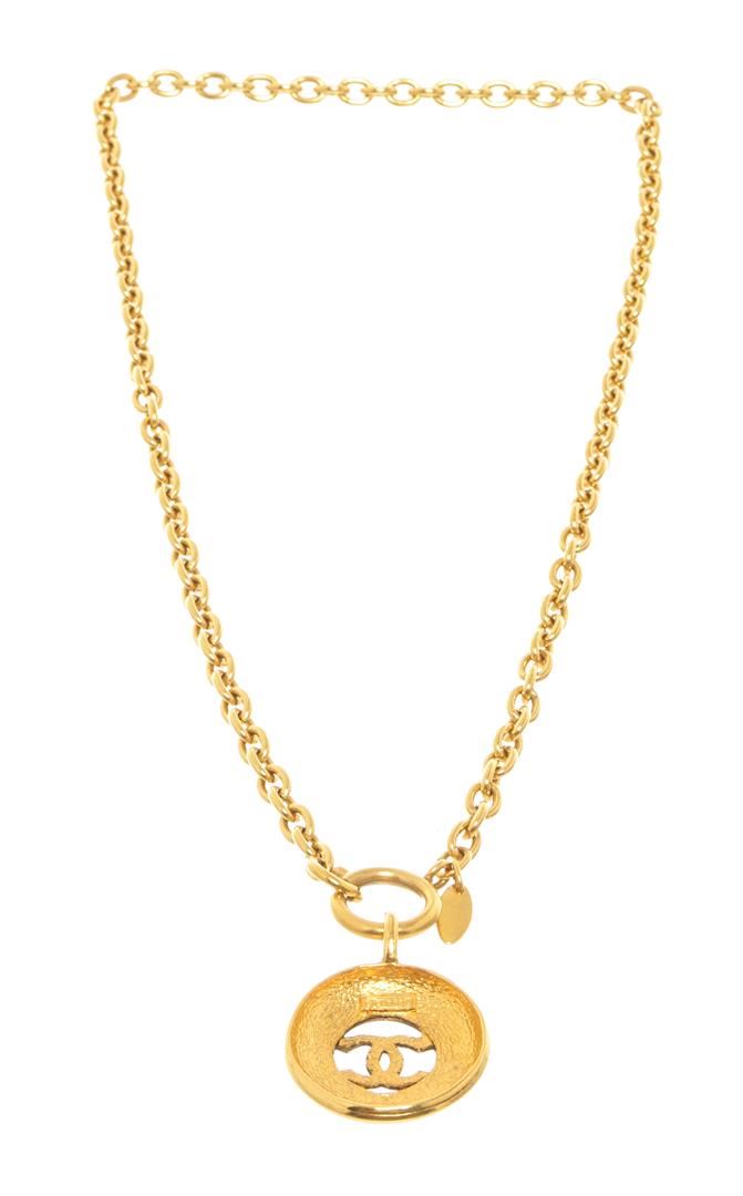One Chanel Gold Metal Vintage CC Round Pendant Necklace. Item is sold AS-IS. All available information is listed in the description and shown in the photo. Chanel Gold Metal Vintage CC Round Pendant Necklace with exterior color gold, material metal. Length: 23 " / 58.42 Cm