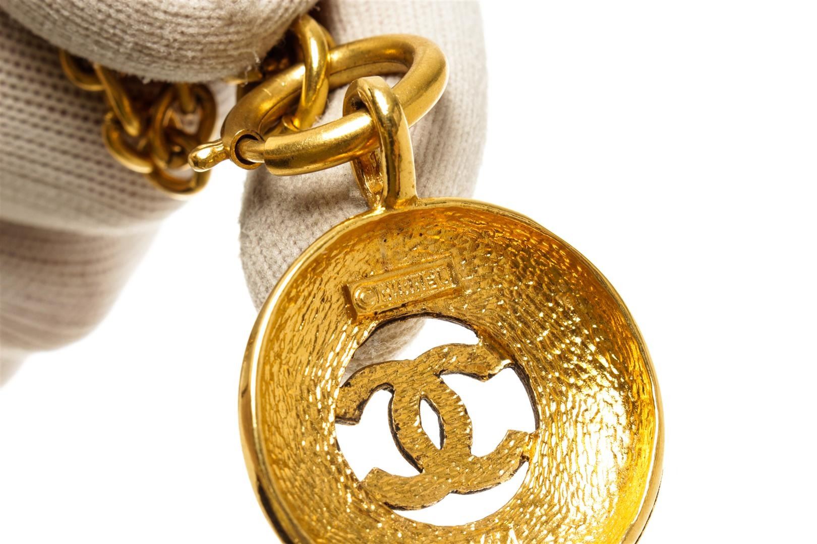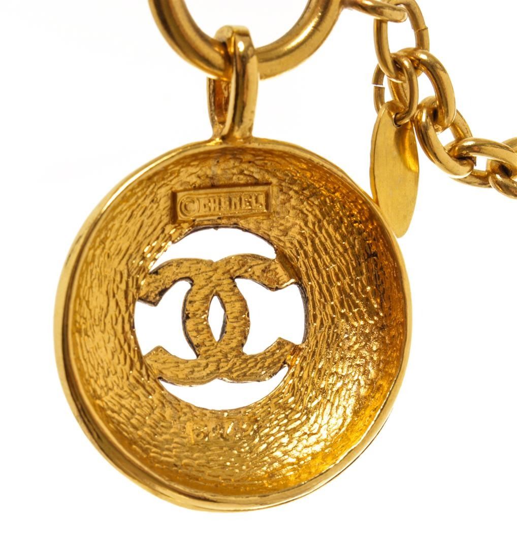 One Chanel Gold Metal Vintage CC Round Pendant Necklace. Item is sold AS-IS. All available information is listed in the description and shown in the photo. Chanel Gold Metal Vintage CC Round Pendant Necklace with exterior color gold, material metal. Length: 23 " / 58.42 Cm