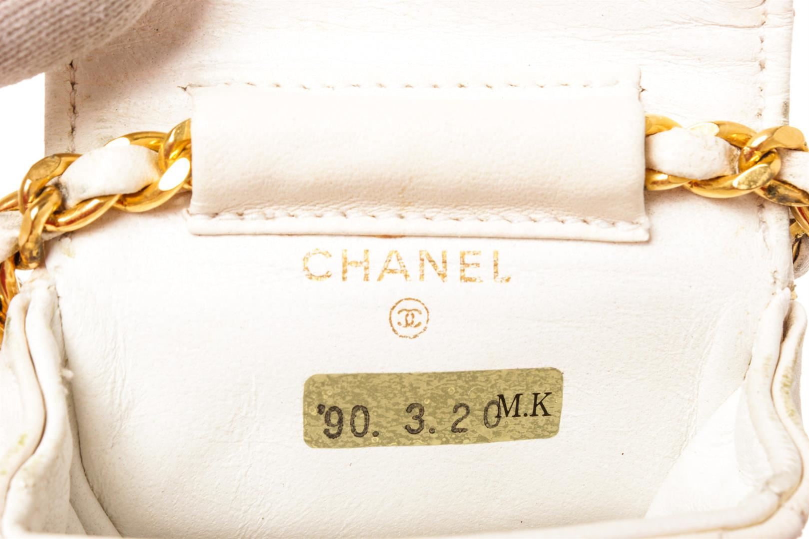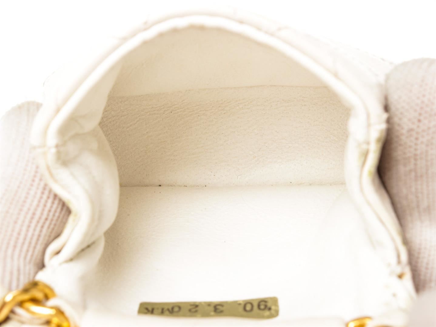 Chanel Gold Micro Mini Flap Bag Braided Belt. Please see photos and description for all available information! Chanel chain micro mini flap bag gold braided belt with CC logo pendant, gold-tone hardware and white micro mini flap bag.
