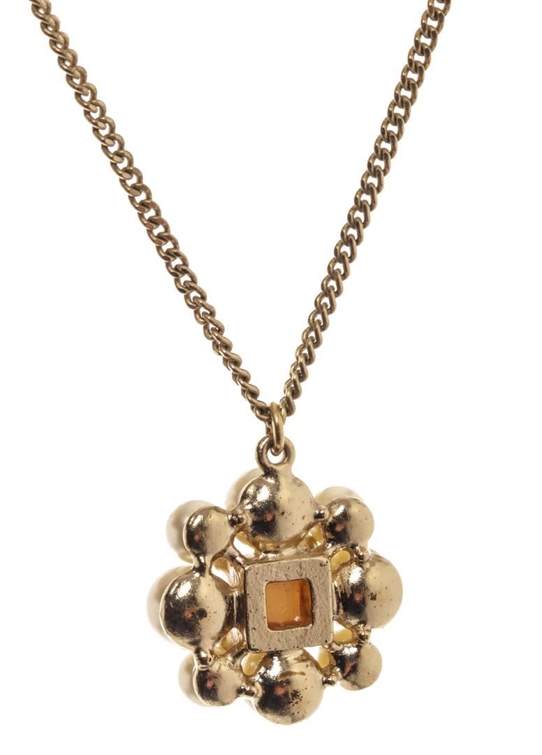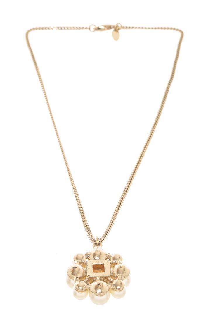 Chanel Gold Orange Pearl Pendant Necklace. All available information is listed in the description and shown in the photos. Chanel Gold Orange Pearl Pendant Necklace with gold-tone hardware, gold fine-link chain, gold orange pearl with stone.