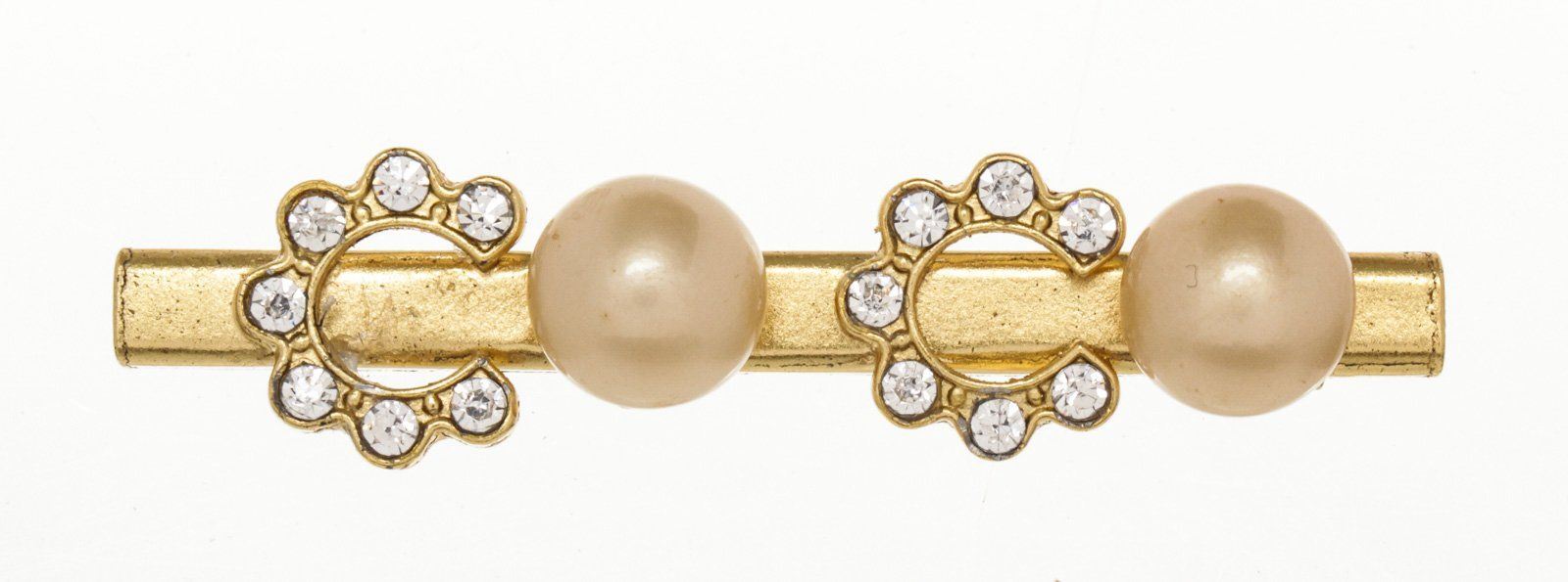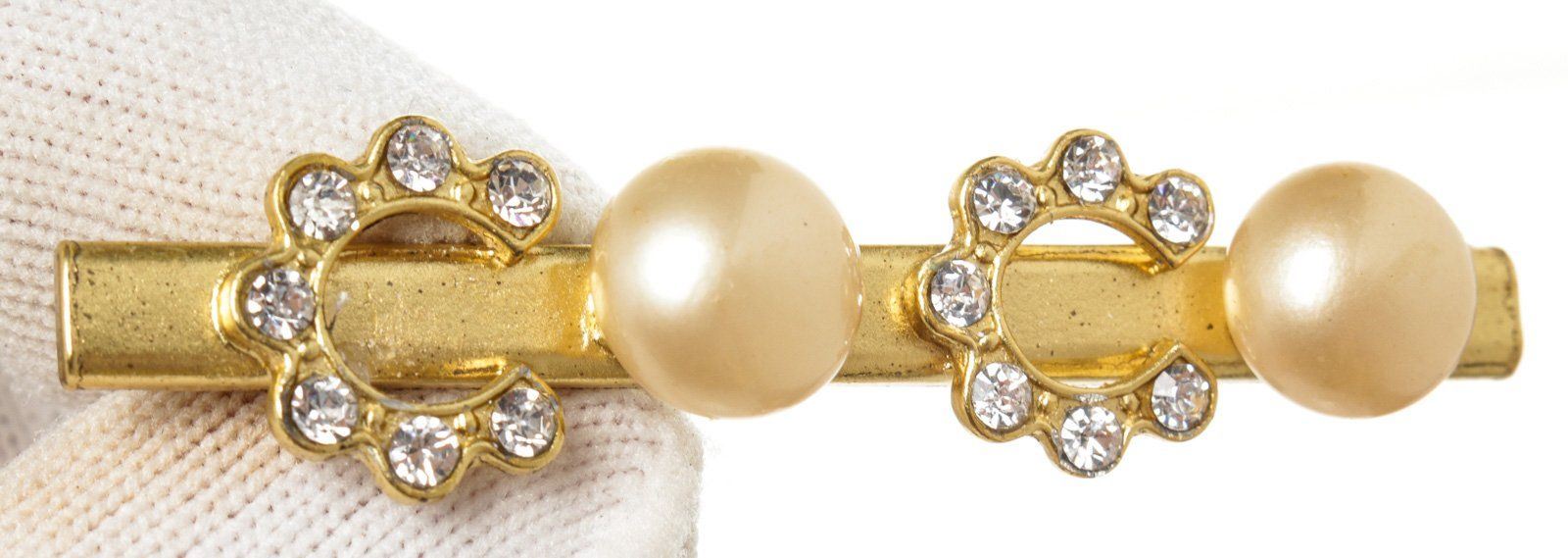 Chanel Gold Pearl CC Hairclip with gold-tone hardware.